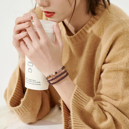 天然酒红石榴石碧玺手链女款小众古风国风礼物转运珠水晶手串多圈