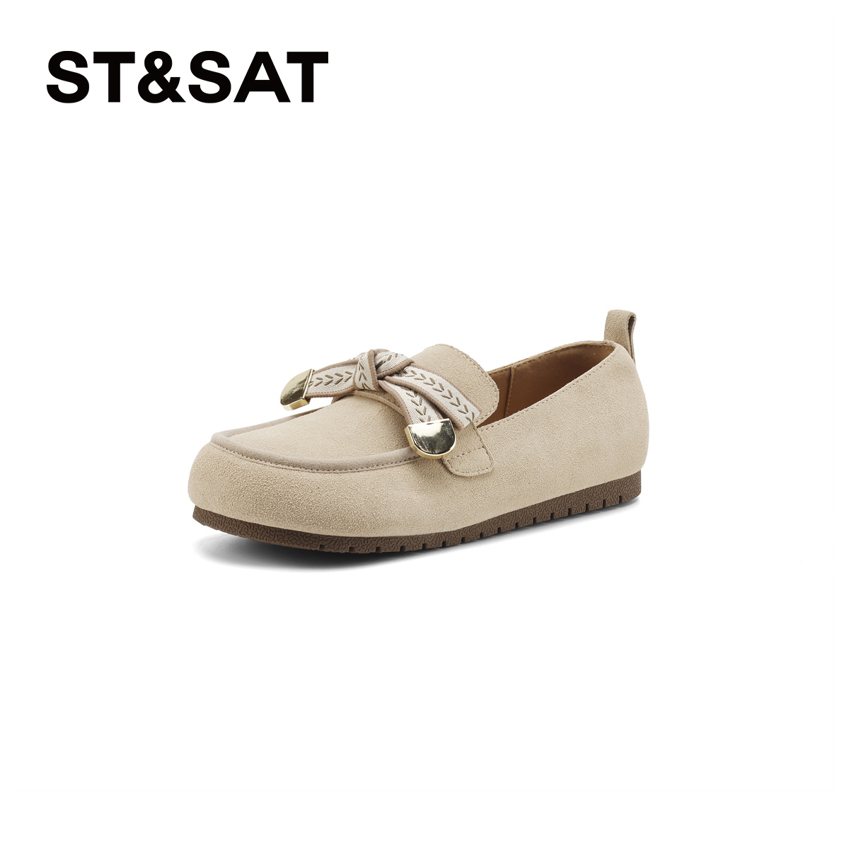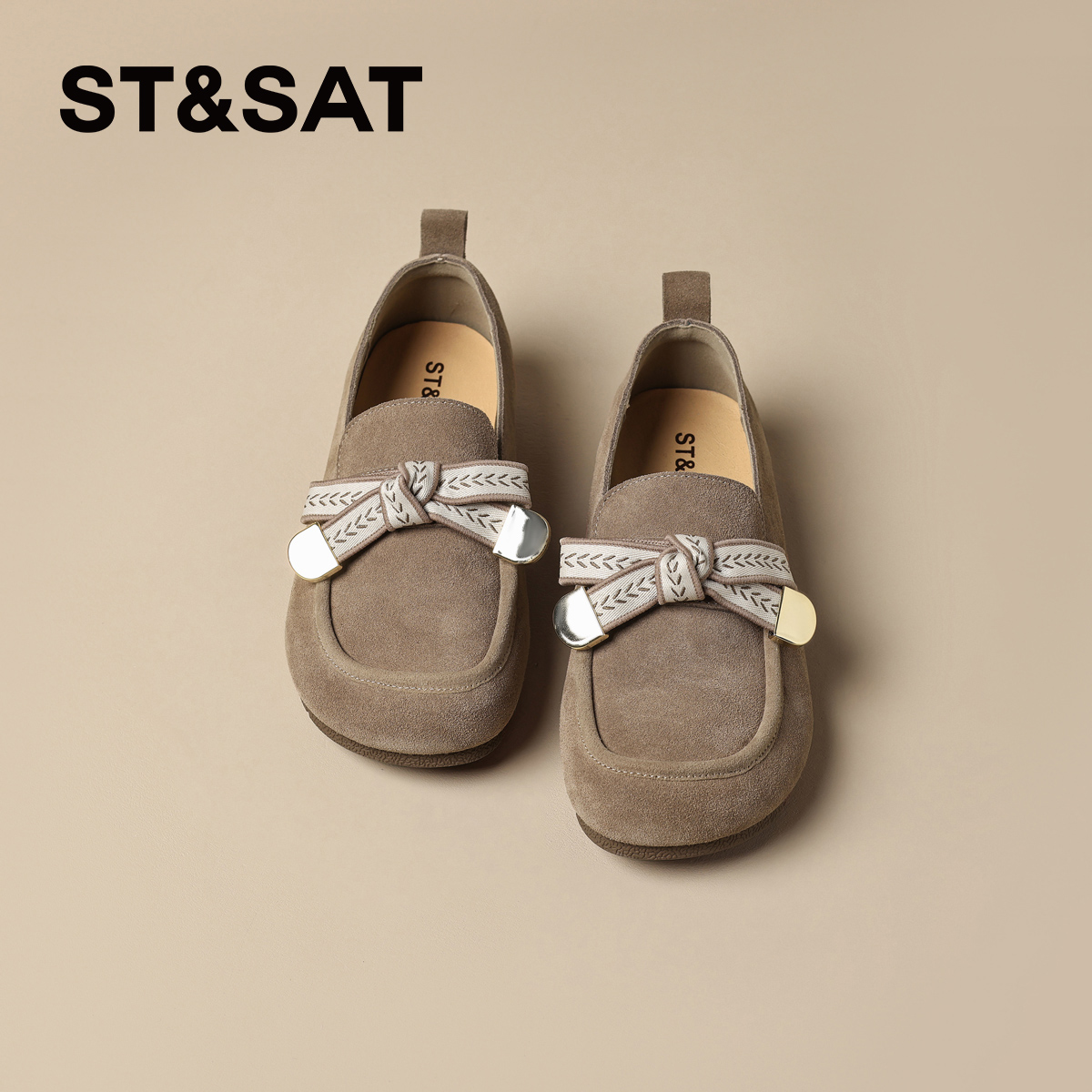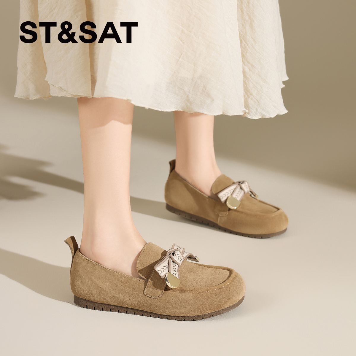 星期六真皮勃肯鞋女款2025春季新款复古软底一脚蹬豆豆鞋平底单鞋