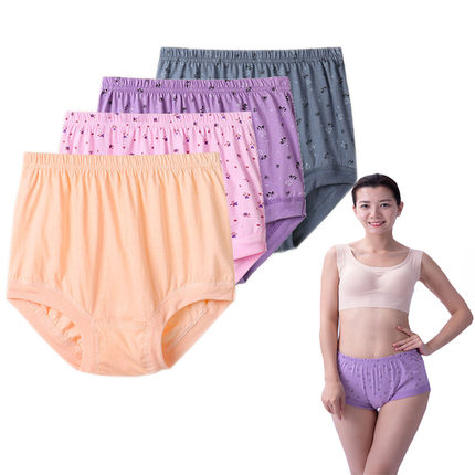 4条装 高腰中老年100%纯棉内裤女全棉老人妈妈奶奶红三角底裤短裤
