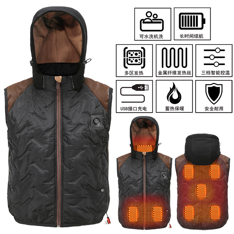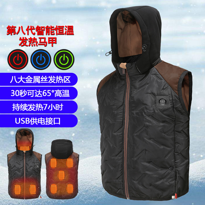 冬新款大码男装8区发热马甲发热服连帽韩版智能发热三挡控温 保暖