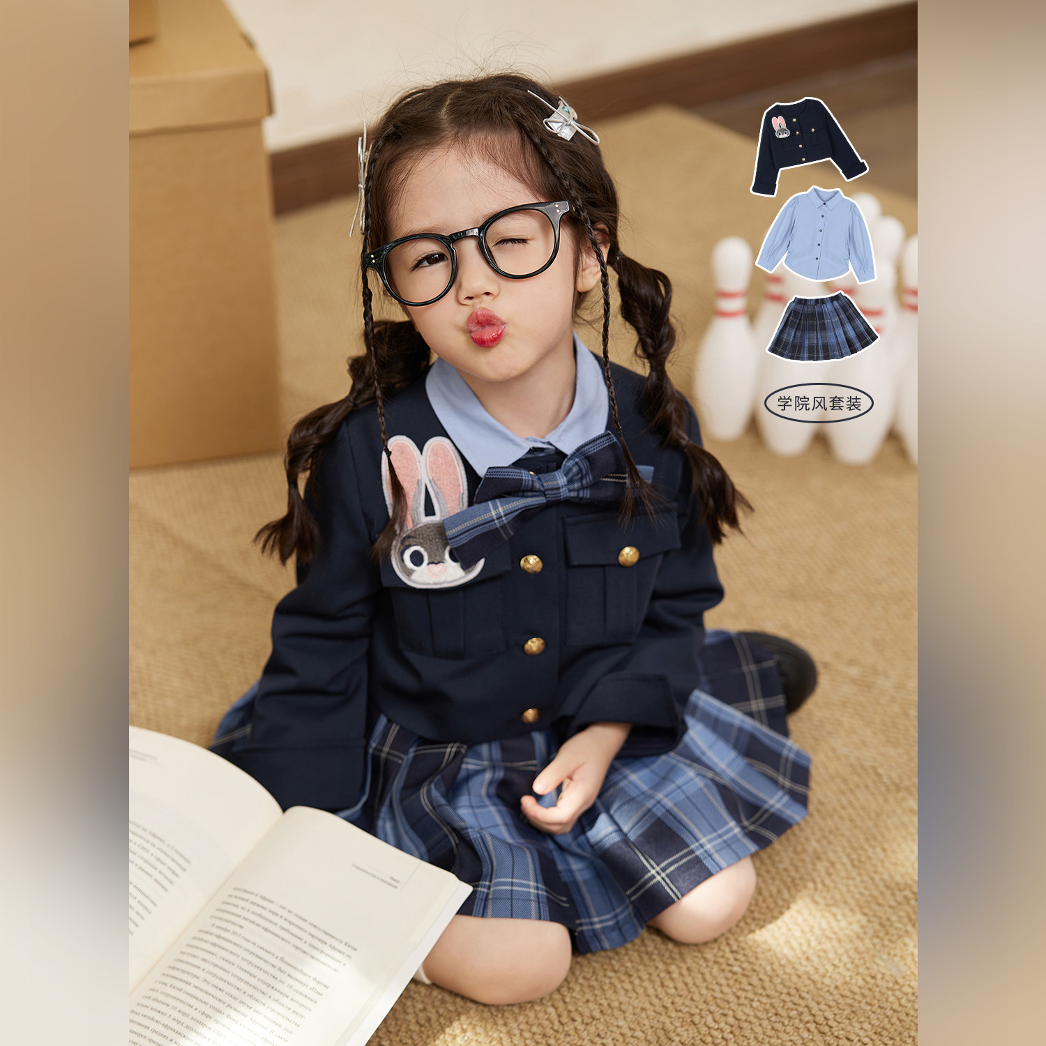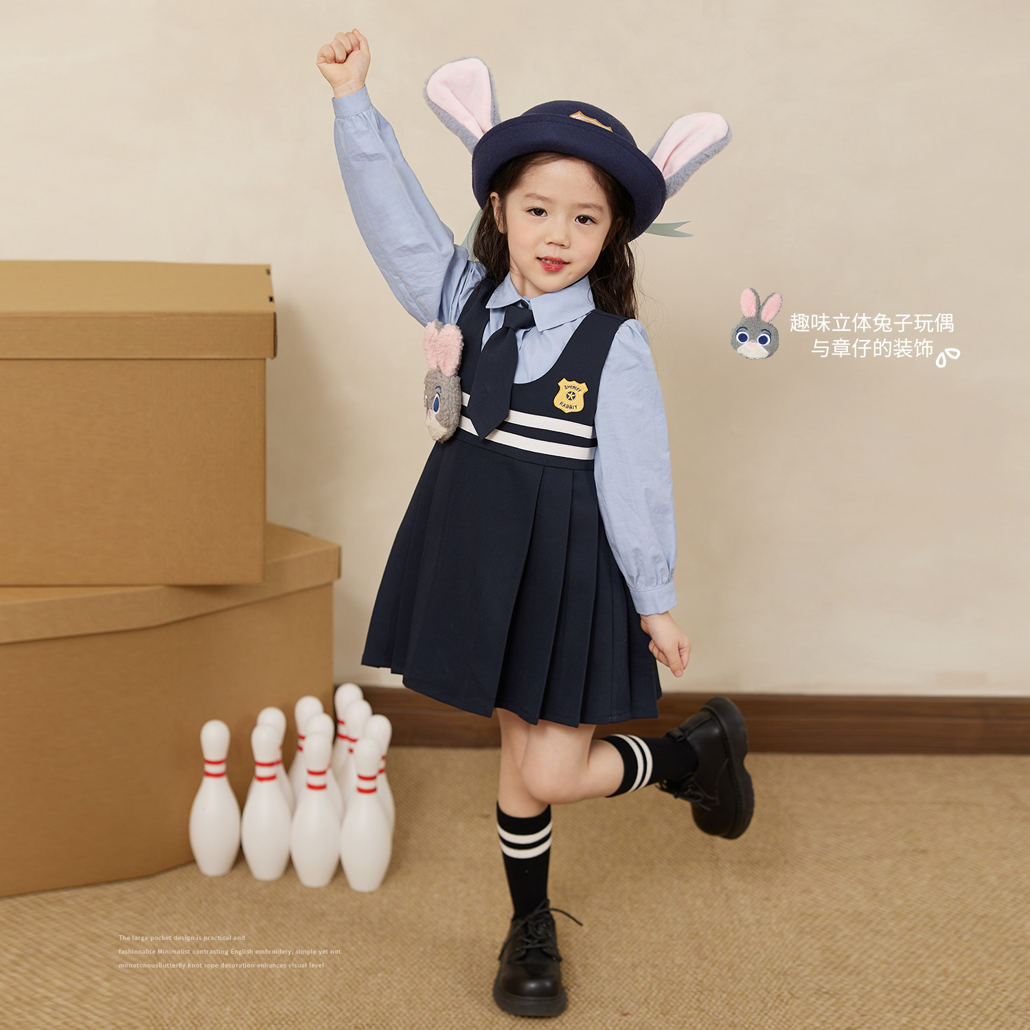 小O宝Okids童装宝宝秋装连衣裙女兔子警官2025新款婴儿套装背心裙