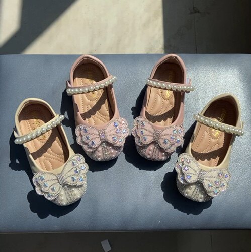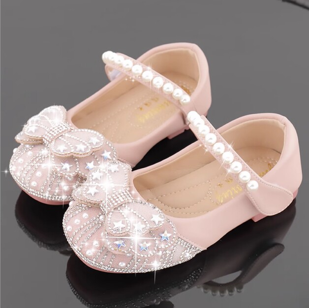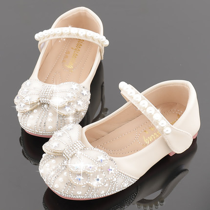 水晶鞋女童软底软皮公主风皮鞋春秋新款水钻中小童鞋子小女孩单鞋