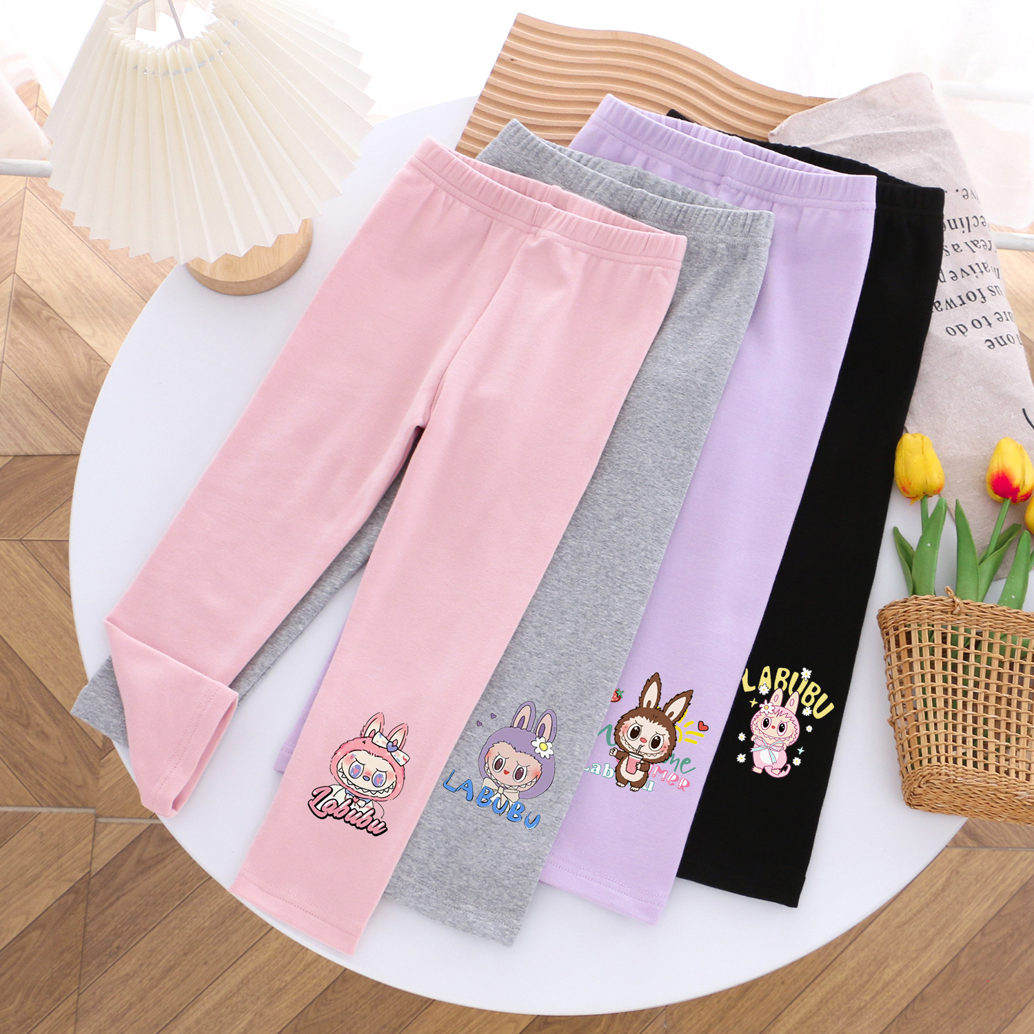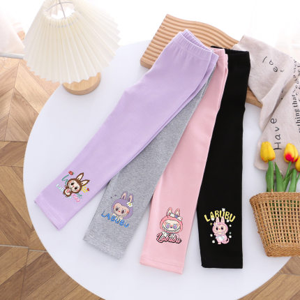 拉布布女童打底裤纯棉春秋长裤儿童开学幼儿园卡通外穿裤子新款