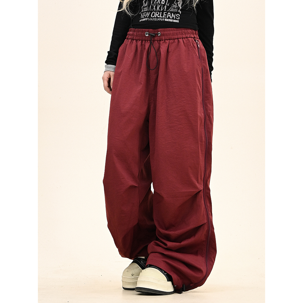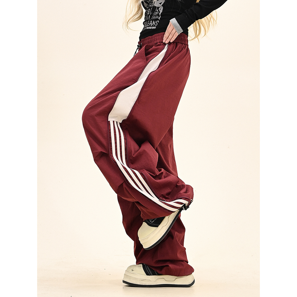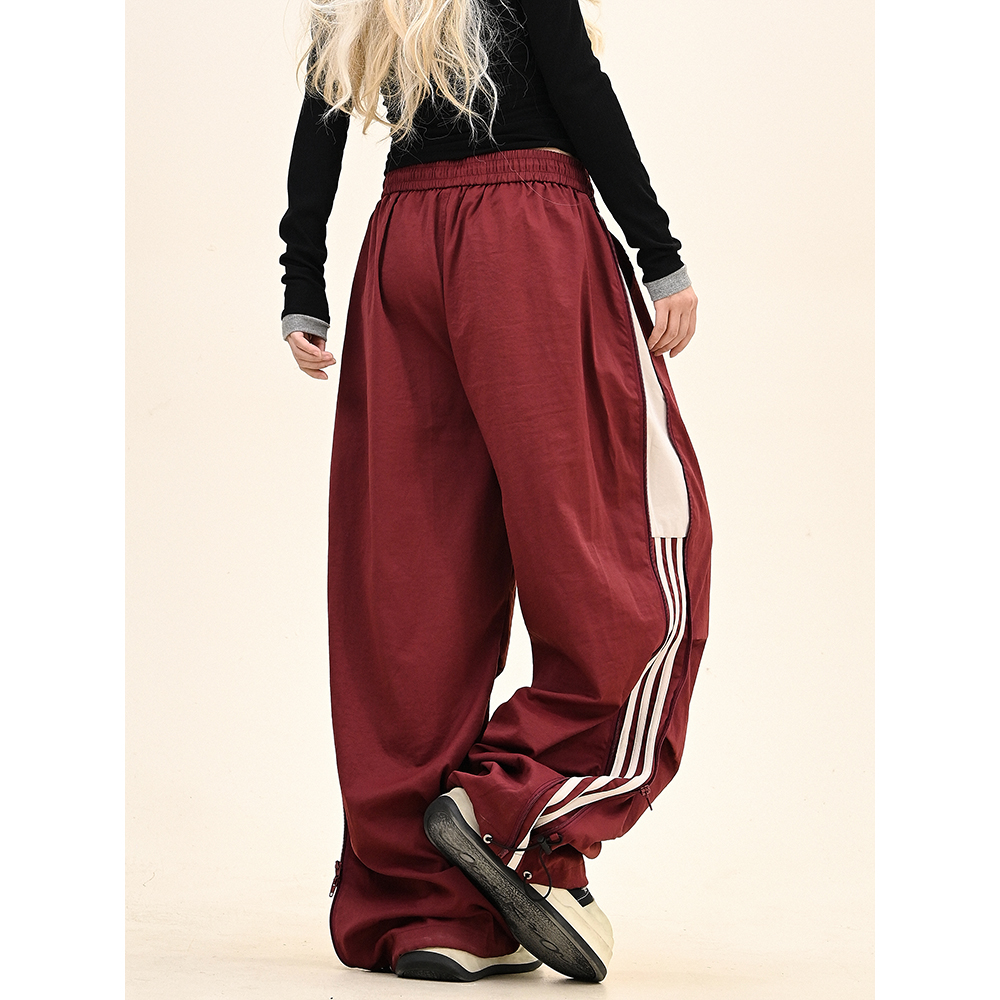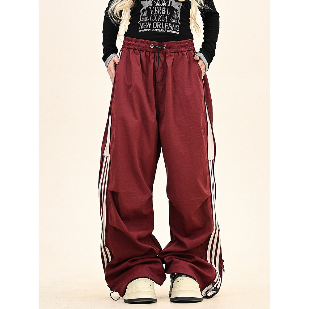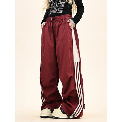 怕麻烦拼接条纹褶皱工装裤女2025冬季新款宽松bf美式潮牌运动卫裤