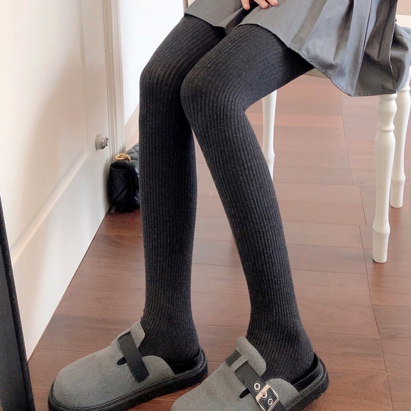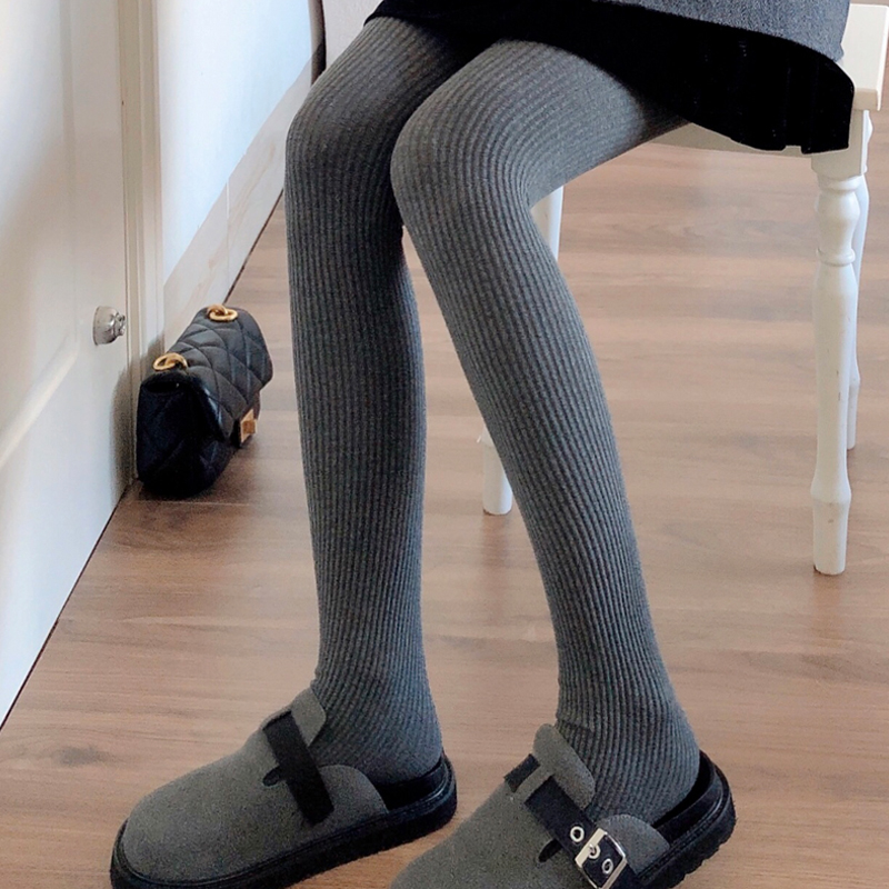 秋冬款烟灰色连裤袜女外穿加厚保暖深灰色打底裤袜竖条纹米白丝袜
