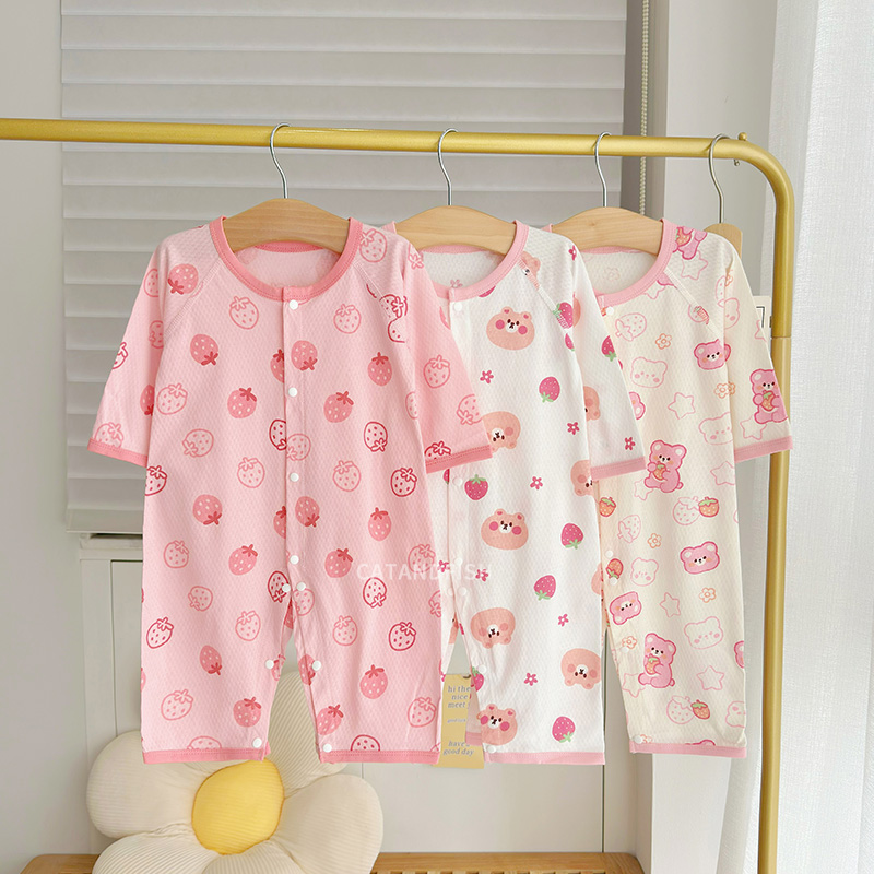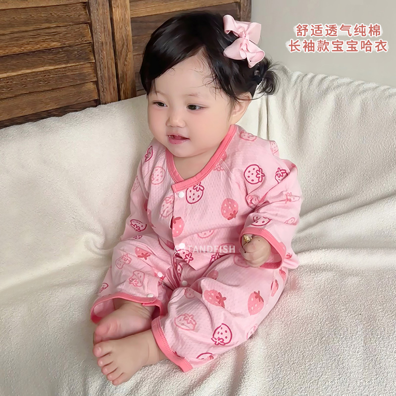 夏季婴儿薄款空调服无骨哈衣女童宝宝爬服新生儿婴儿0-12月连体衣