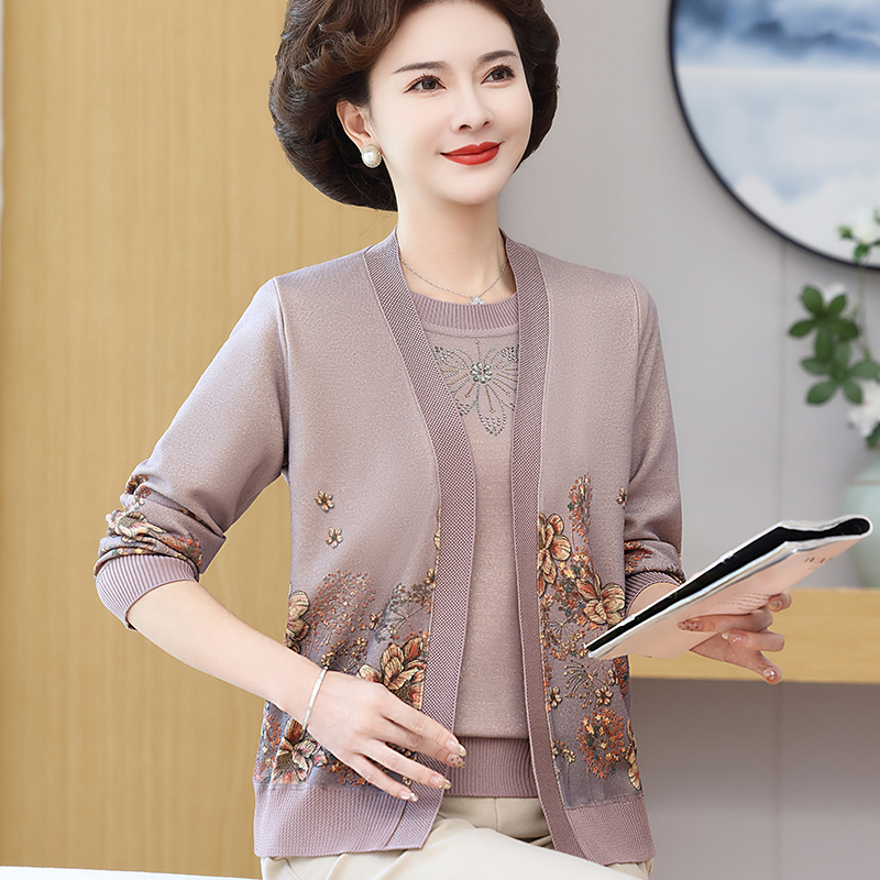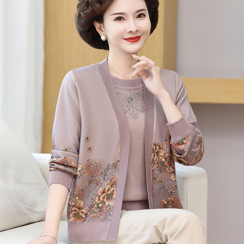 中老年人春秋薄款洋气外套50岁60妈妈春装两件套装中年妇女上衣服