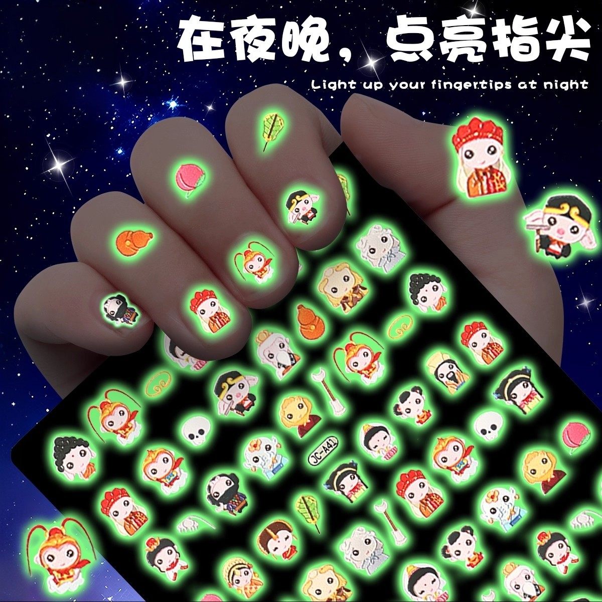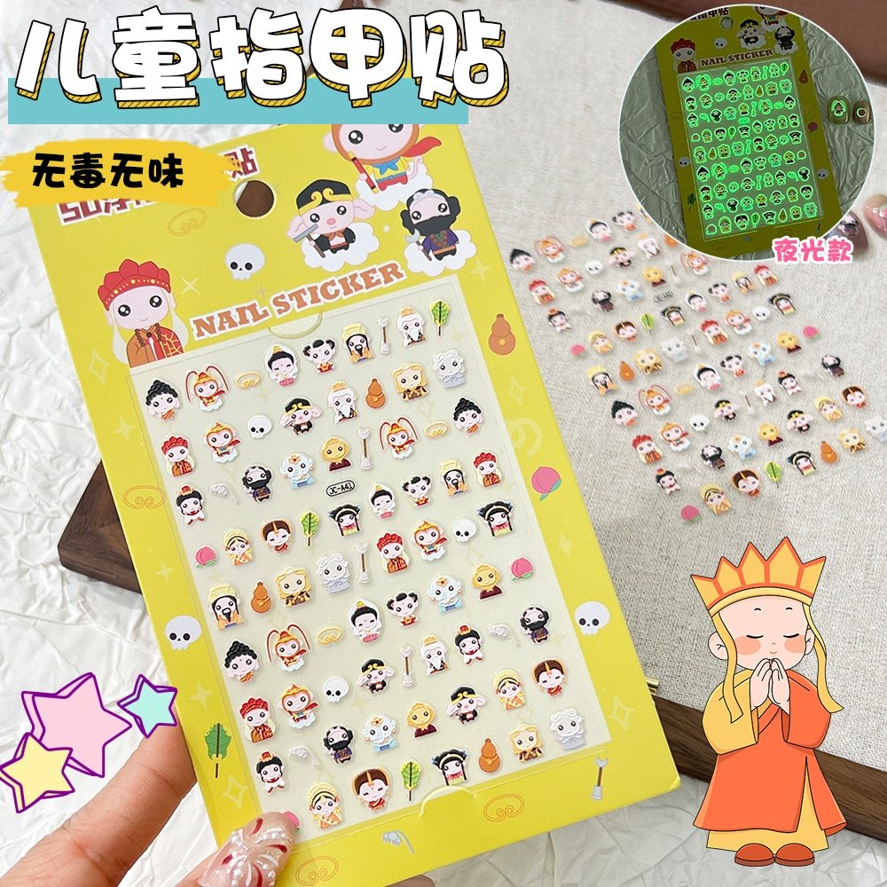 小女孩夜光指甲贴儿童女孩卡通美甲贴纸无毒无味可撕小鼻嘎贴纸小朋友发光图案贴画可爱粘贴贴纸本