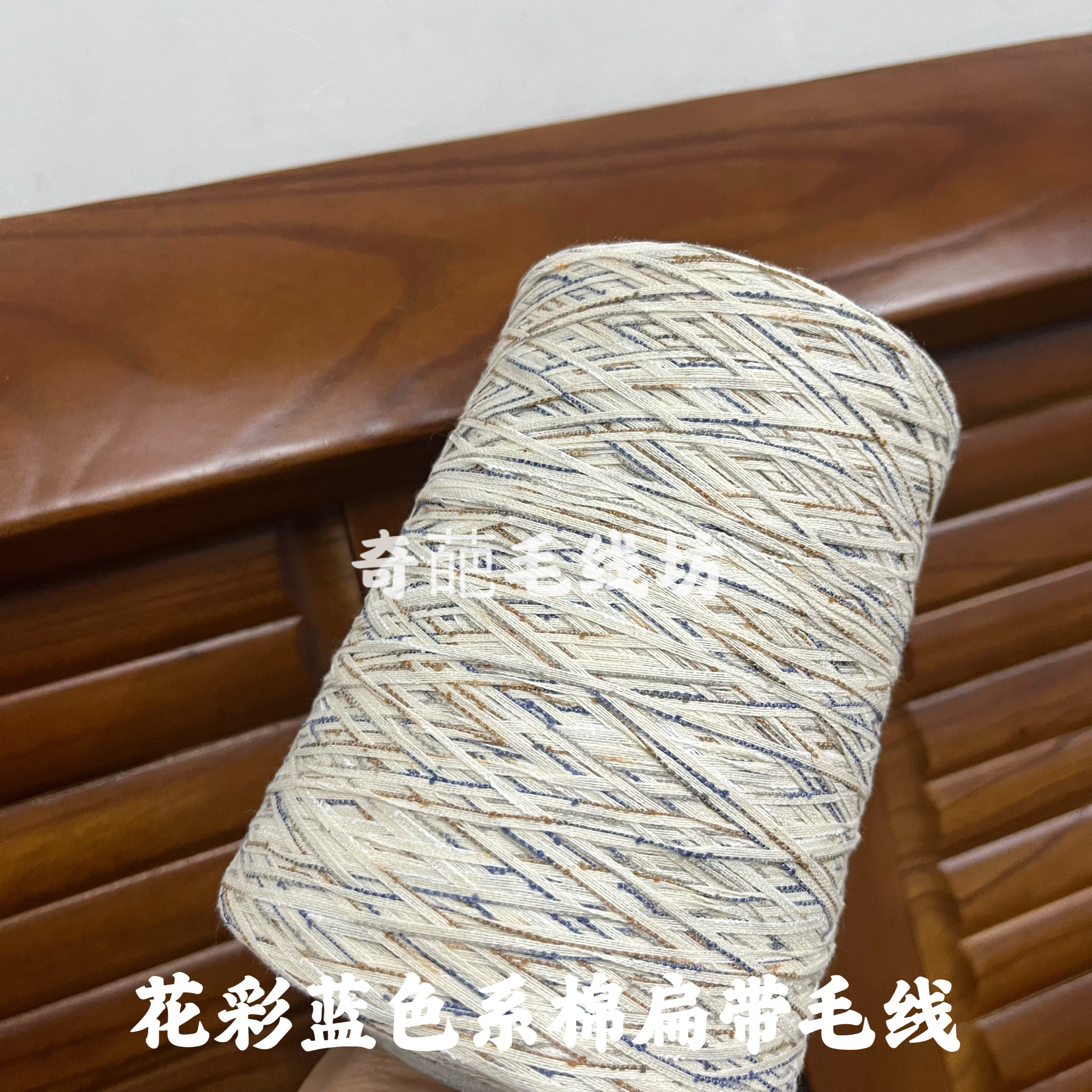 标价一斤的价格 彩蓝色系中粗扁带纱毛线 80%棉 小香风包线满包邮