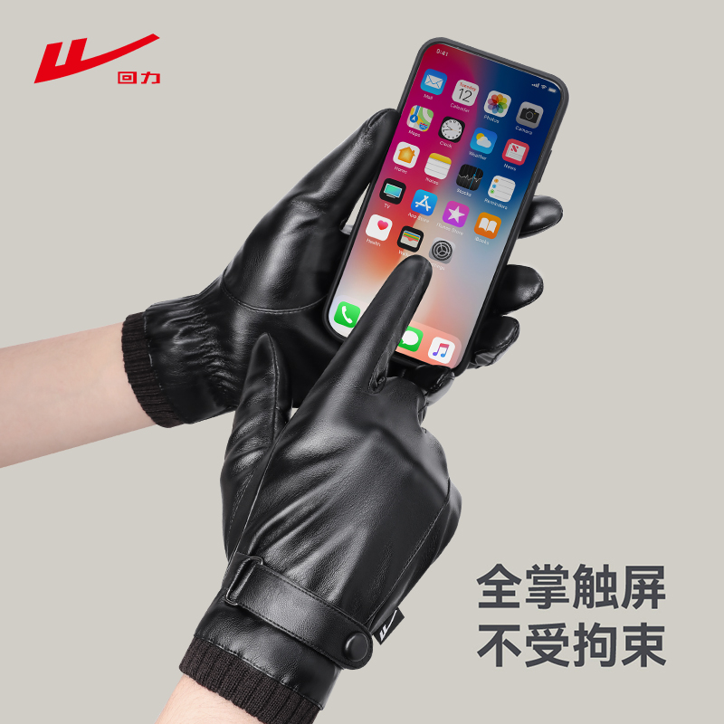 回力皮手套男款2025新款秋冬保暖加绒加厚骑行电动车摩托车潮流女