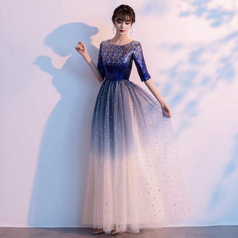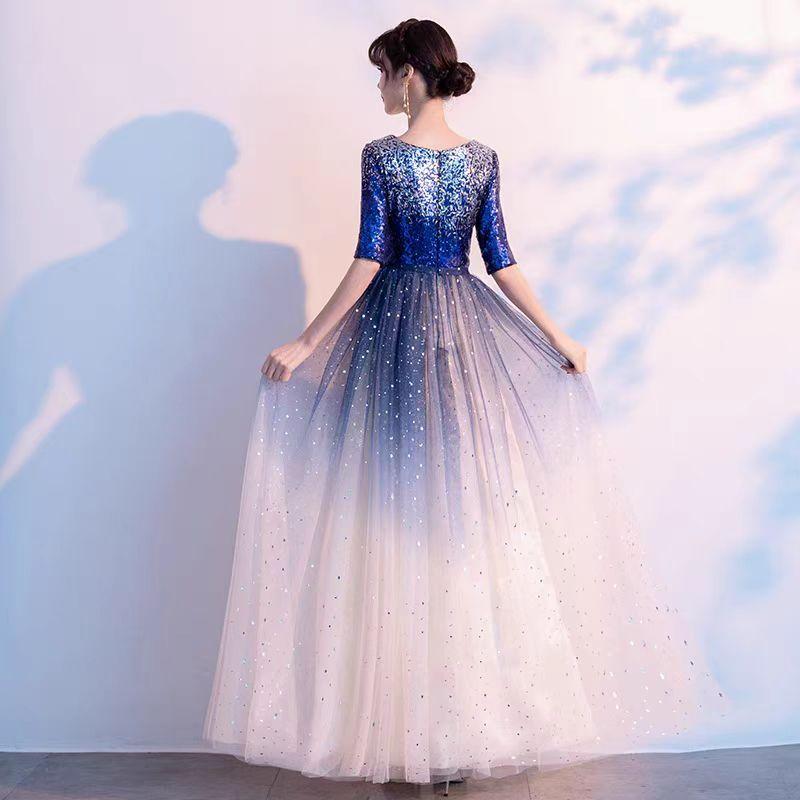 卓薇尚2025新款大合唱团礼服裙女渐变主持人短袖长裙演出服表演服