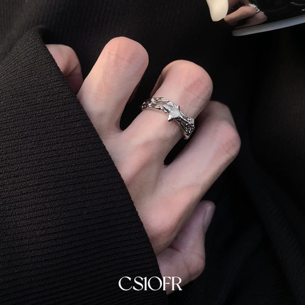 白月光星芒戒指男女潮清冷风小众设计不规则开口可调节戒指
