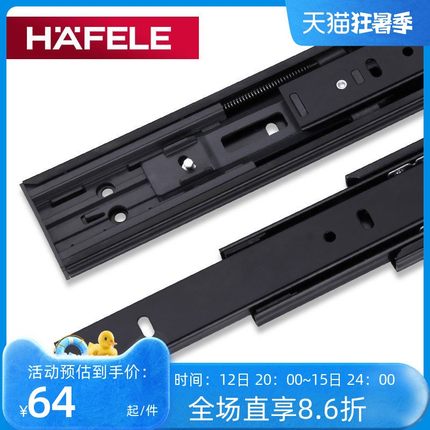 德国海福乐抽屉滑道轨道三节轨加厚缓冲阻尼静音导轨整体橱柜键盘