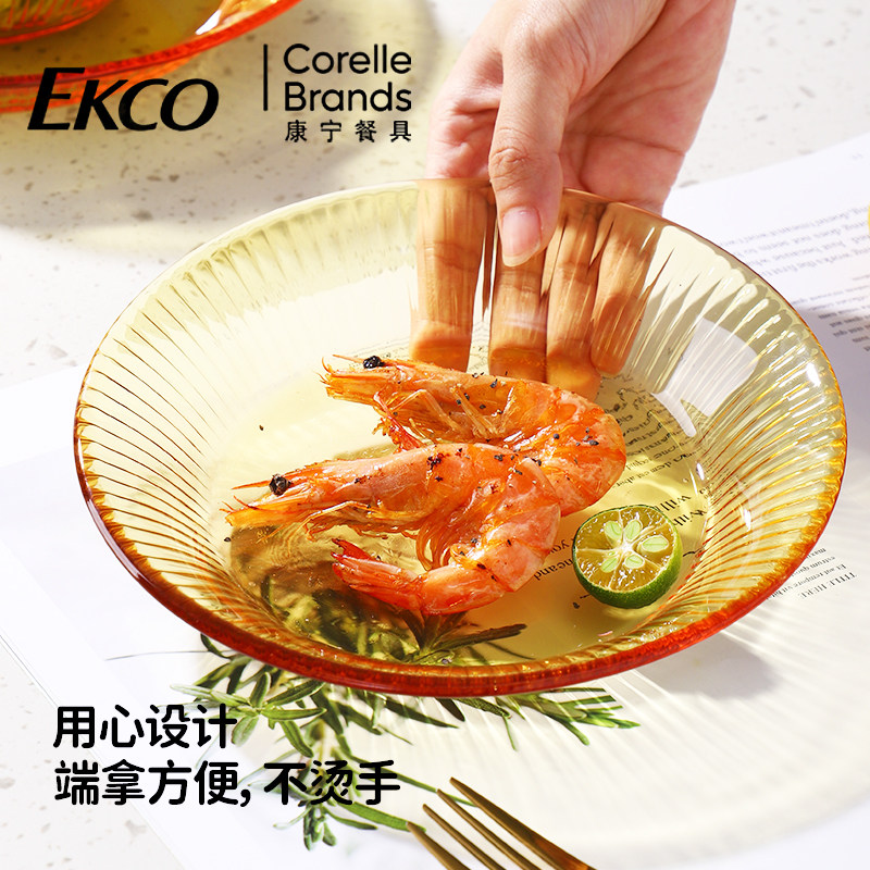 康宁餐具玻璃盘耐高温微波炉菜盘家用玻璃碟子客厅水果盘子高级感