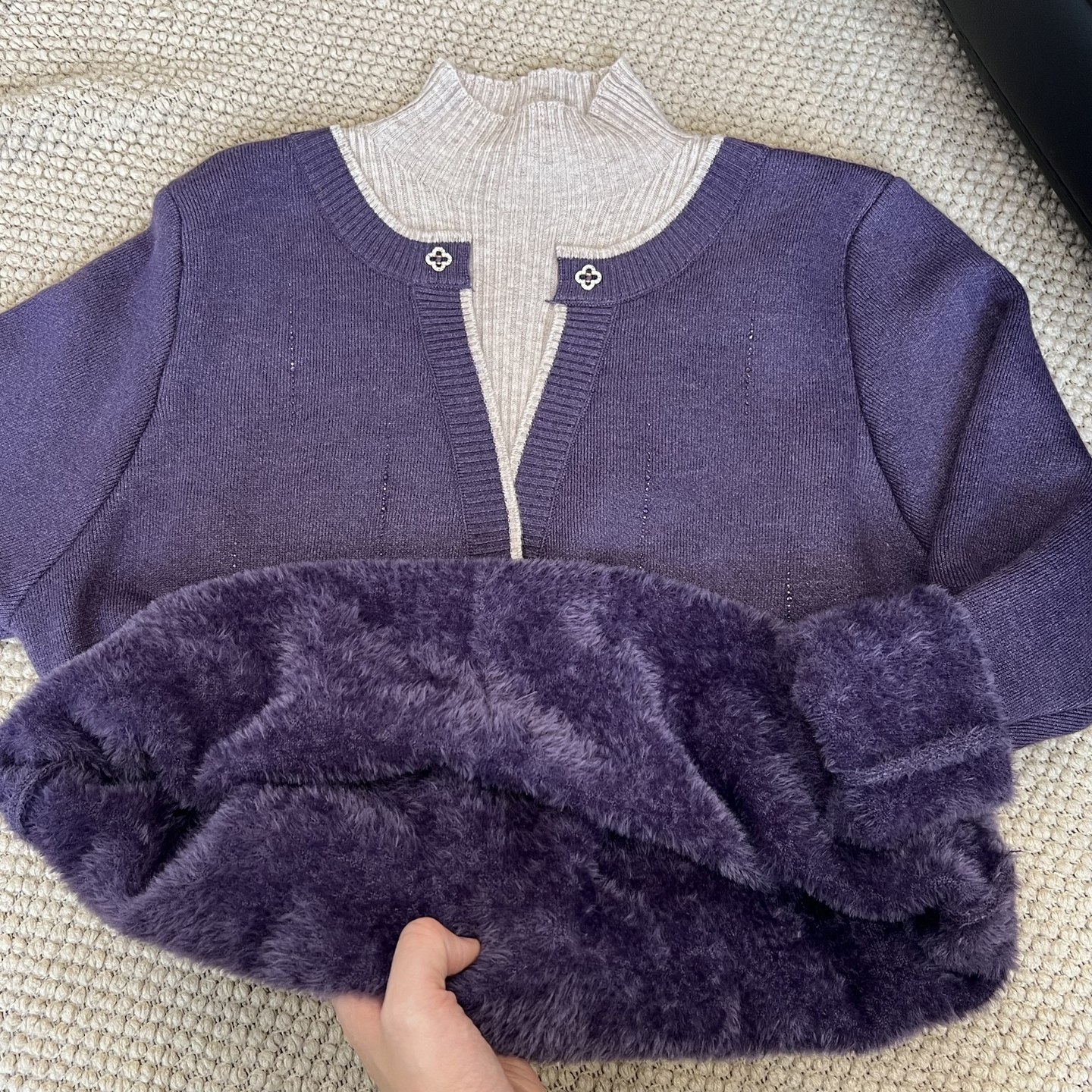 气质时尚新款妈妈装冬季针织上衣厚款加绒中老年女一体绒保暖毛衣