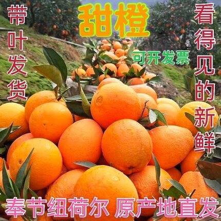 重庆奉节现摘带叶优质橙子 圆红脐橙新鲜发货 多汁味甜 礼盒水果