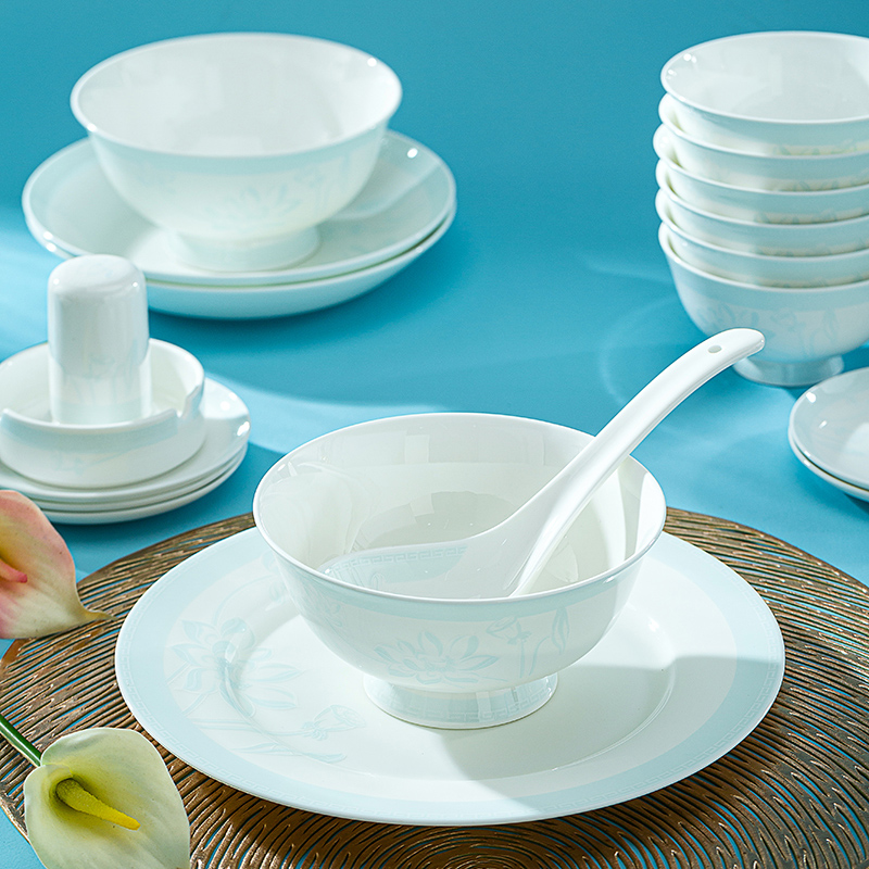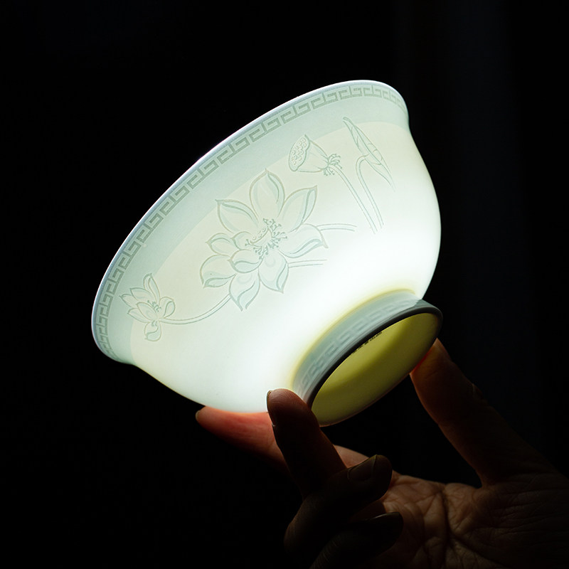 景德镇陶瓷器 骨瓷餐具 家用高脚米饭碗 釉下彩单碗荷塘月色单买