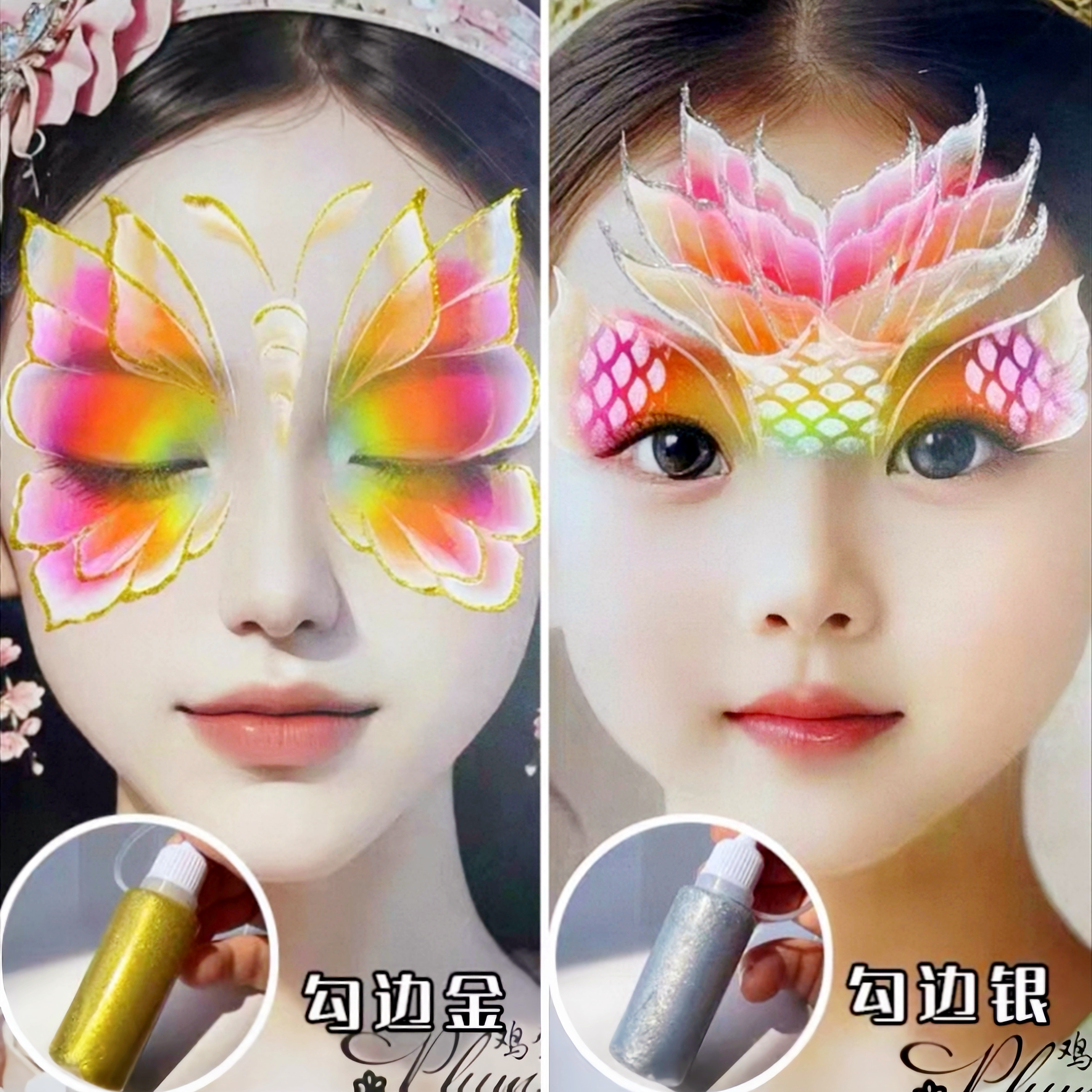 面部彩绘勾边啫喱细闪金色银色亮晶晶闪粉儿童舞台妆眼妆爆闪亮片