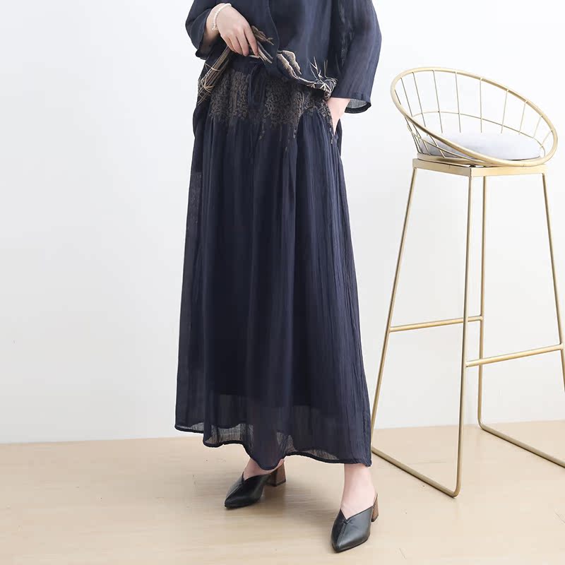 春夏季新款原创新中式复古文艺柔美苎麻民族风盘扣衬衣绣花半身裙