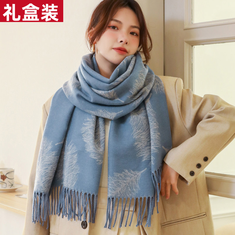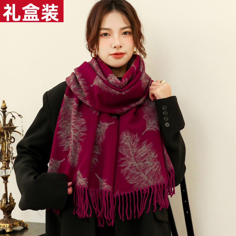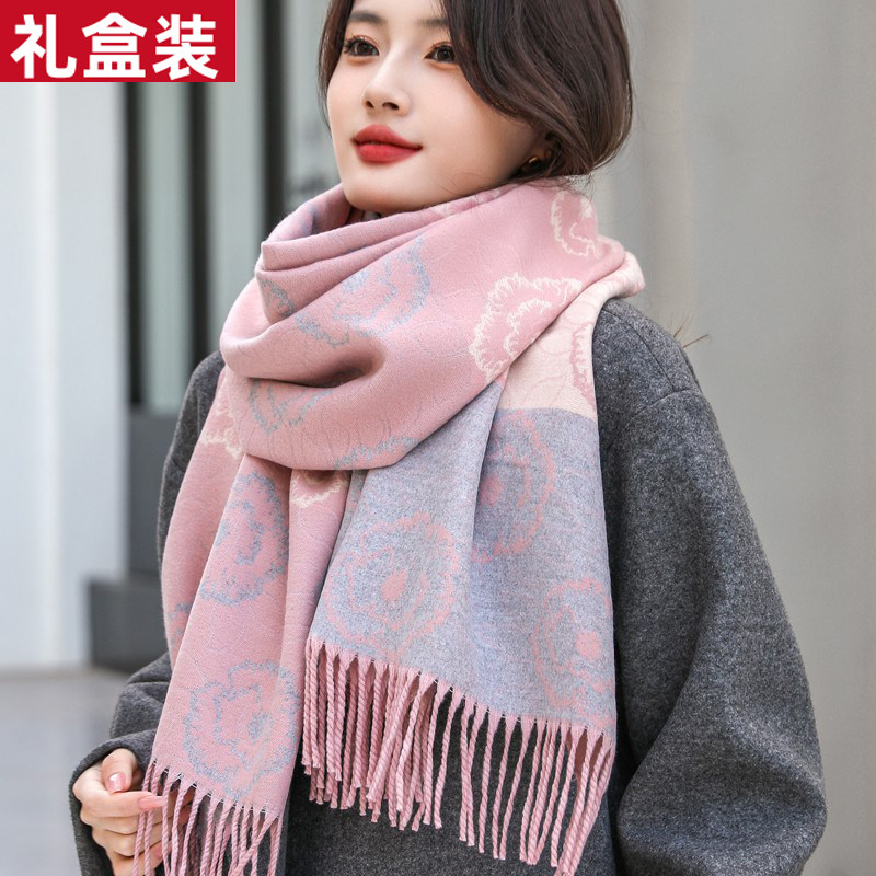 送女友恒源祥围巾女秋冬季百搭长款保暖加厚羊绒羊毛披肩两用礼物