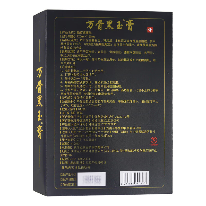 鑫远康万骨黑玉膏8贴装颈肩腰腿关节外用磁疗镇痛贴