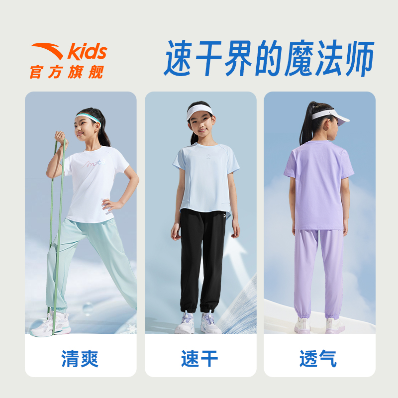 安踏童装女童裤子2025夏季新款大童速干透气卫裤运动裤儿童长裤女