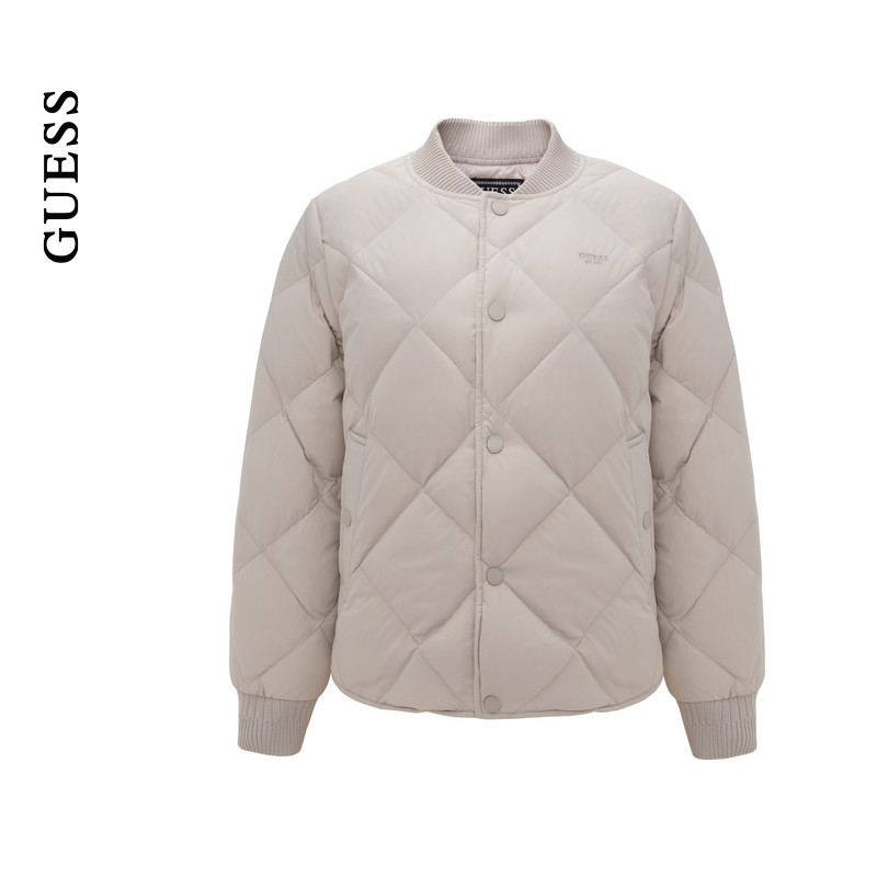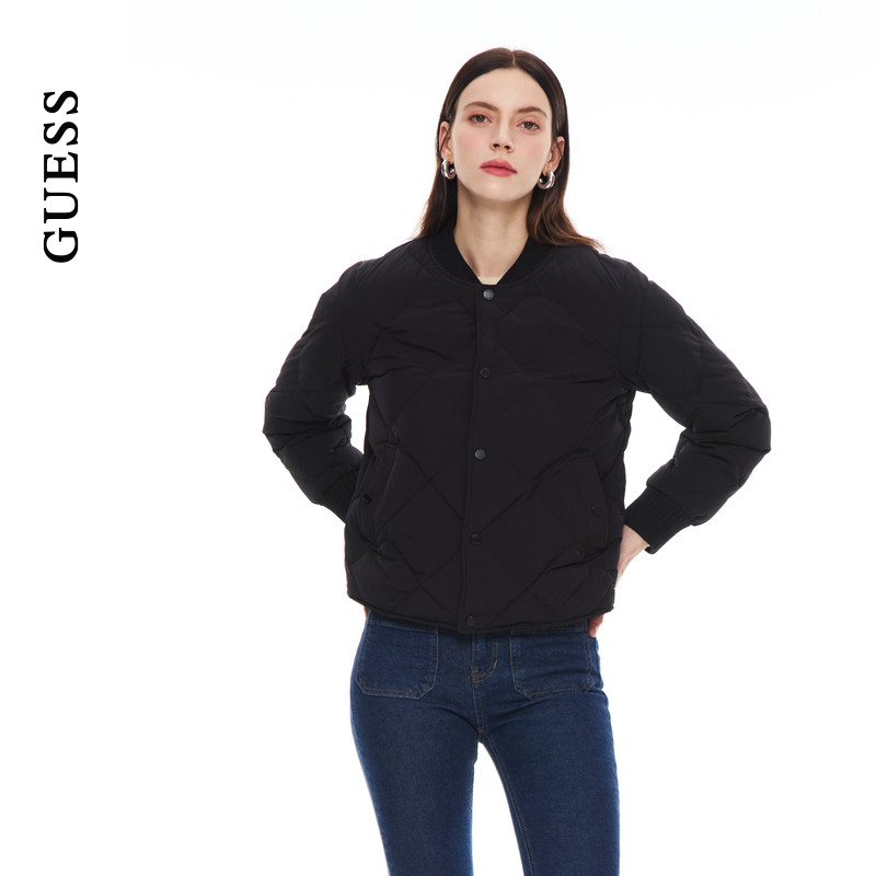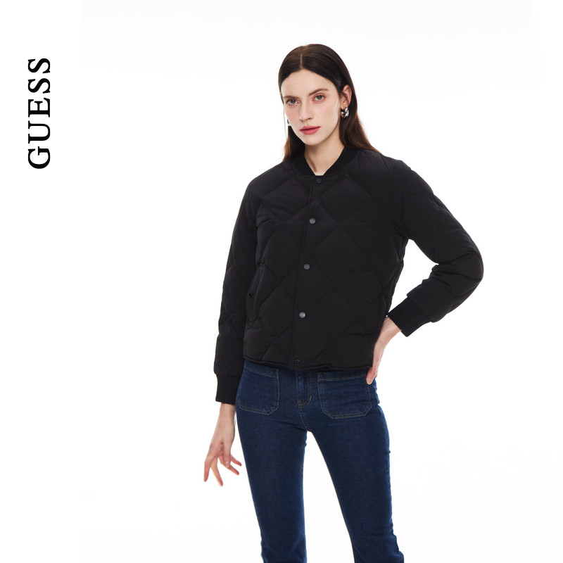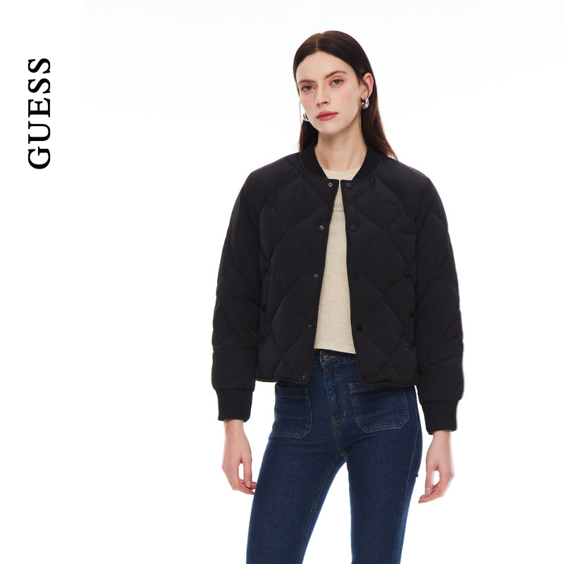 GUESS女士商务通勤简约罗纹菱格绗缝羽绒服-MO4W5880