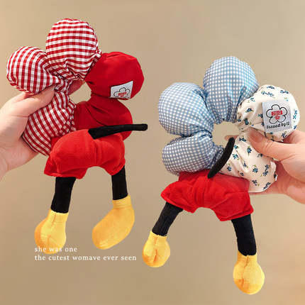 卡通米奇大肠发圈花朵波点屁屁发绳女毛绒丸子头花公主落难橡皮筋