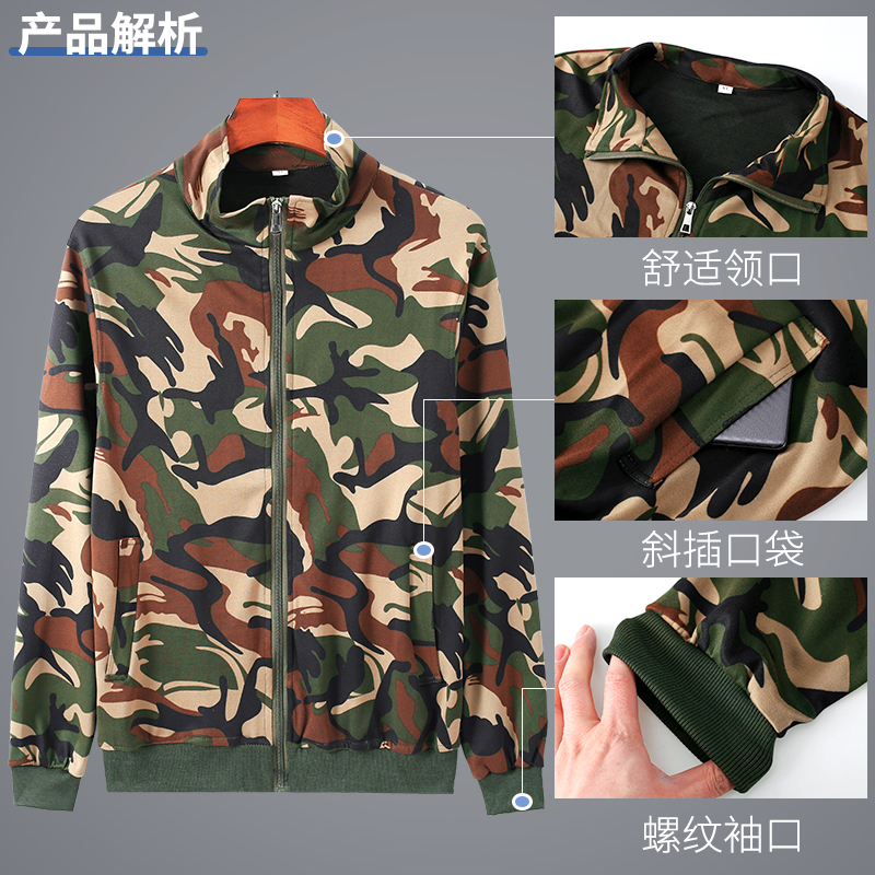 春秋迷彩服套装男宽松弹力长袖耐磨透气上衣外套运动劳保工作服