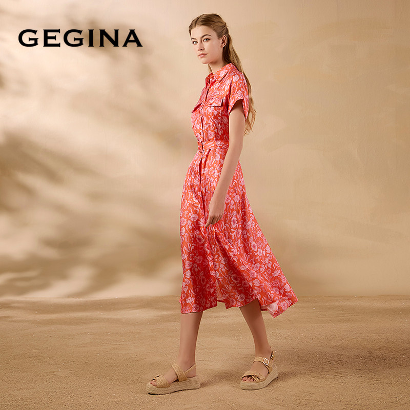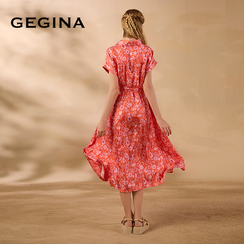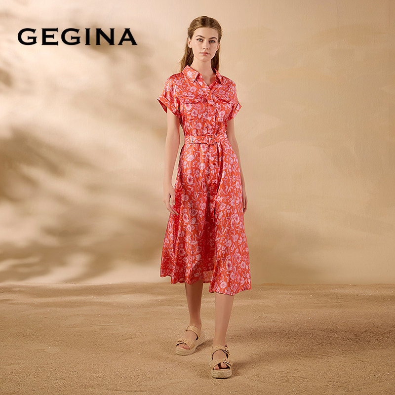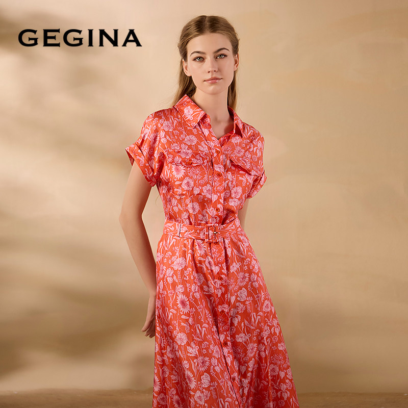 [桑蚕丝]GEGINA吉吉娜春夏季新品收腰真丝连衣裙浪漫花卉裙子