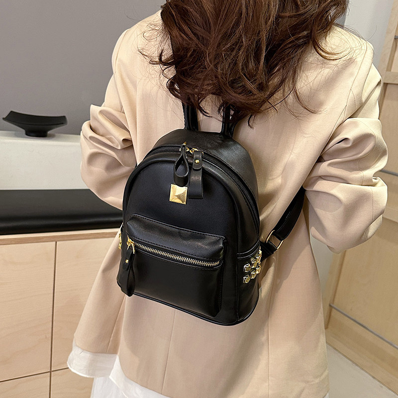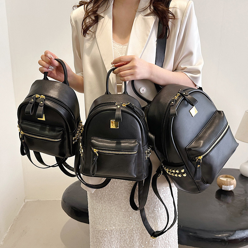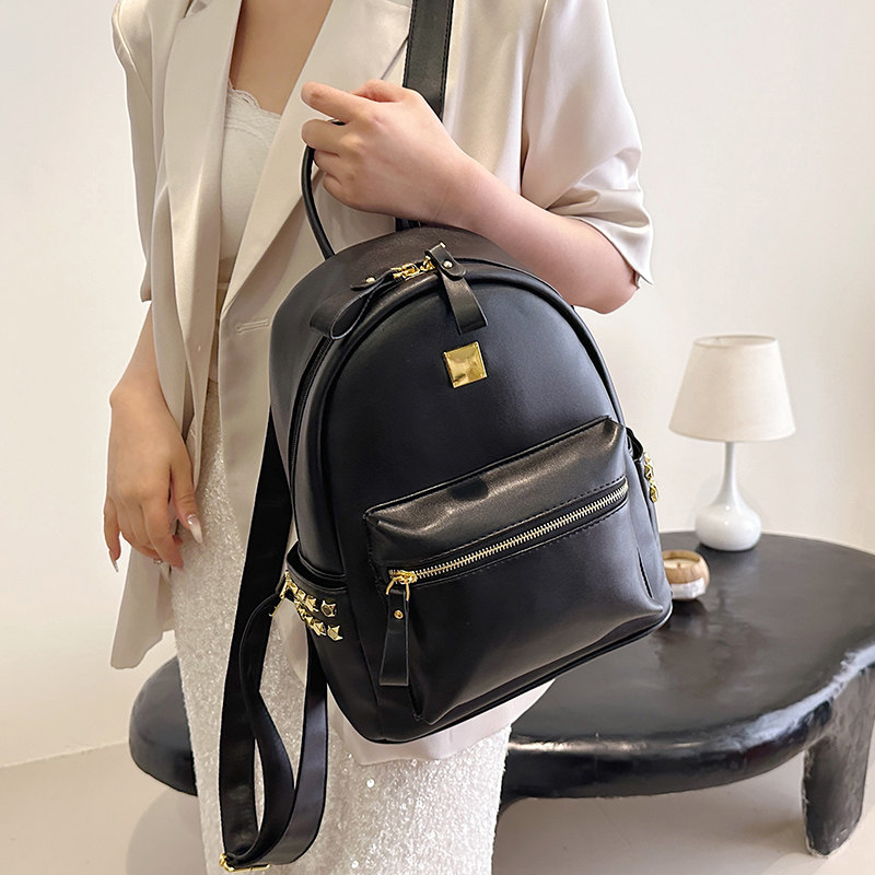 当季流行纯色黑色小背包2024新款女士洋气百搭双肩包简约日用通勤