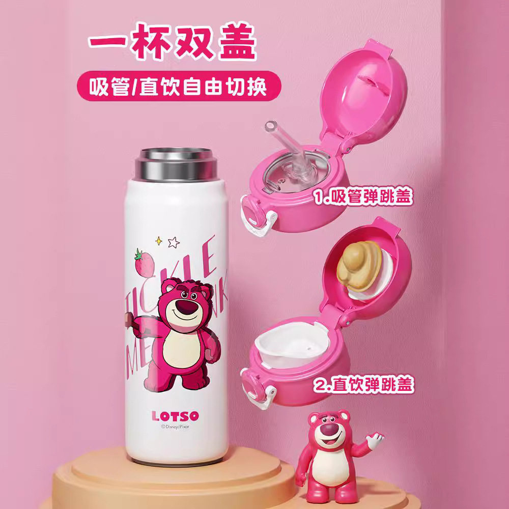 迪士尼草莓熊奥特曼蜘蛛侠冰雪316保温杯带杯套双盖杯500ml10625
