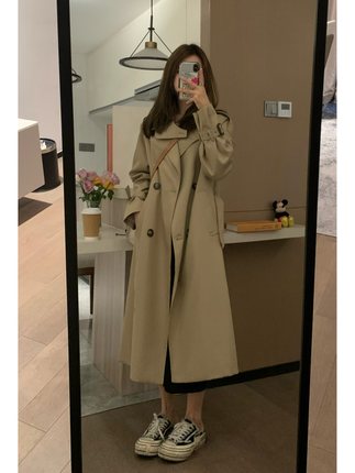 Veee 秋季入场券 显瘦质感韩版卡其色风衣中长款休闲廓形秋季外套