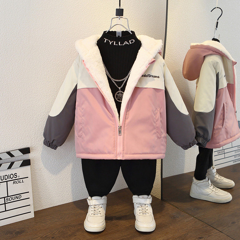 女童加绒外套秋冬派克服棉衣2025新款保暖棉服儿童加厚中小童棉袄
