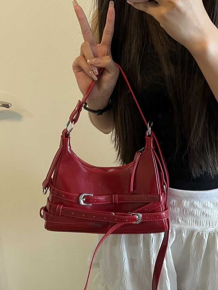 UR红色腋下包包女式2024新款夏天时尚手提小方包高级感小众单肩包
