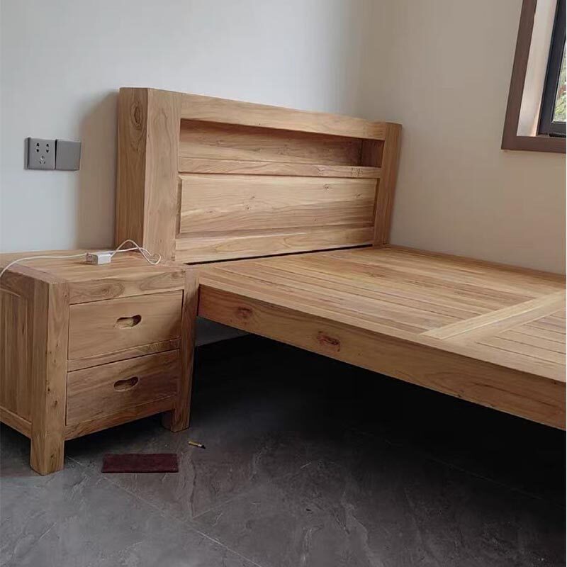 老榆木原木榫卯床全实木大料单双人卧室床环保木蜡油儿定制榻榻米