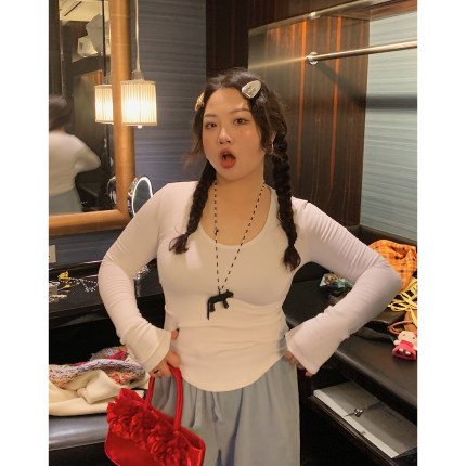 金大支大圆领打底衫内搭女2025新款秋冬大码胖mm修身长袖T恤上衣