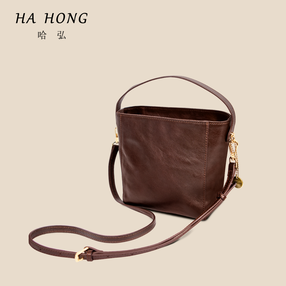 哈弘新款小号休闲女包小众设计复古高级感单肩斜挎包小水桶包1142