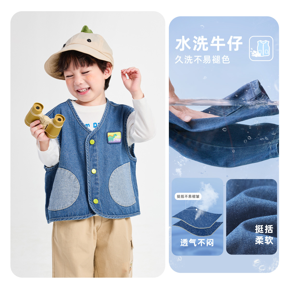 男童牛仔马甲春季小宝宝马夹婴儿上衣小童童装春秋款儿童衣服春装