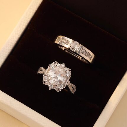 仿真活口结婚对戒奢华款仿莫桑石戒指男女假钻戒情侣求婚婚礼道具