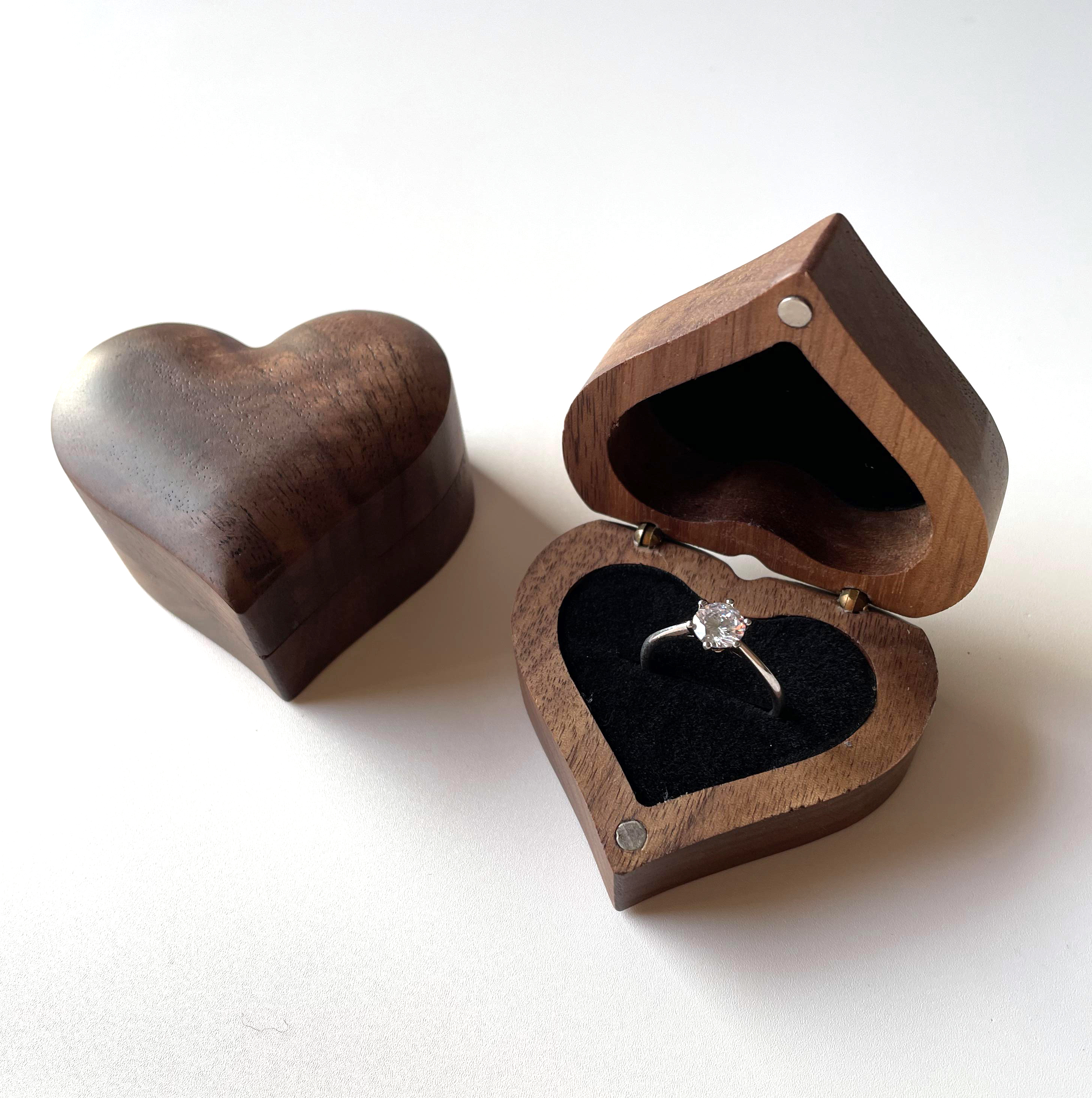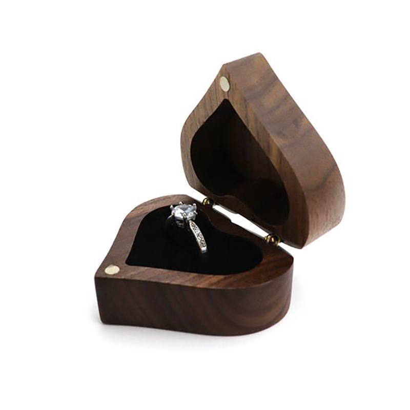 情人节实木心钻戒指盒胡桃首饰品空盒子收纳便携式求婚结婚交换小
