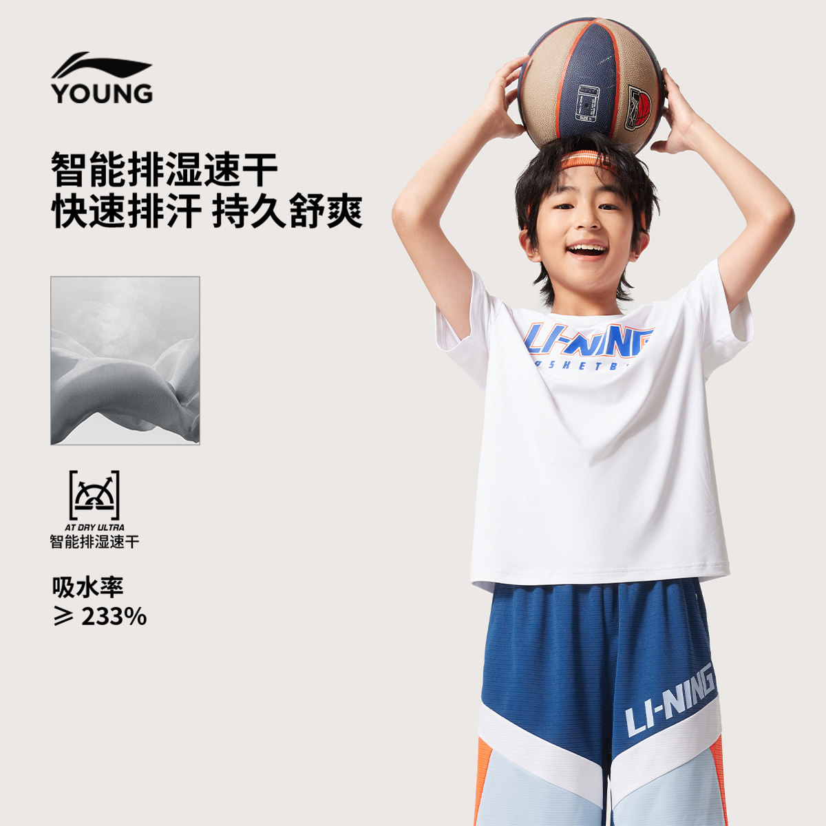 李宁儿童速干衣短袖T恤2025新款夏季男童装中大童青少年运动上衣