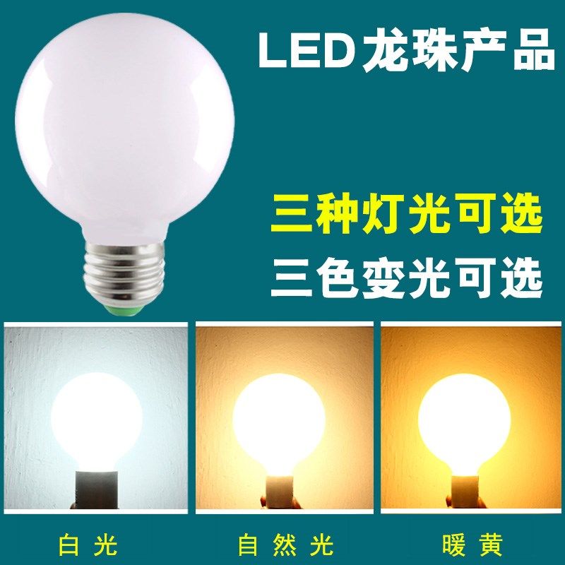 led龙珠灯泡节能灯泡e27螺旋口球形三色大灯泡奶白灯泡G80G95暖黄