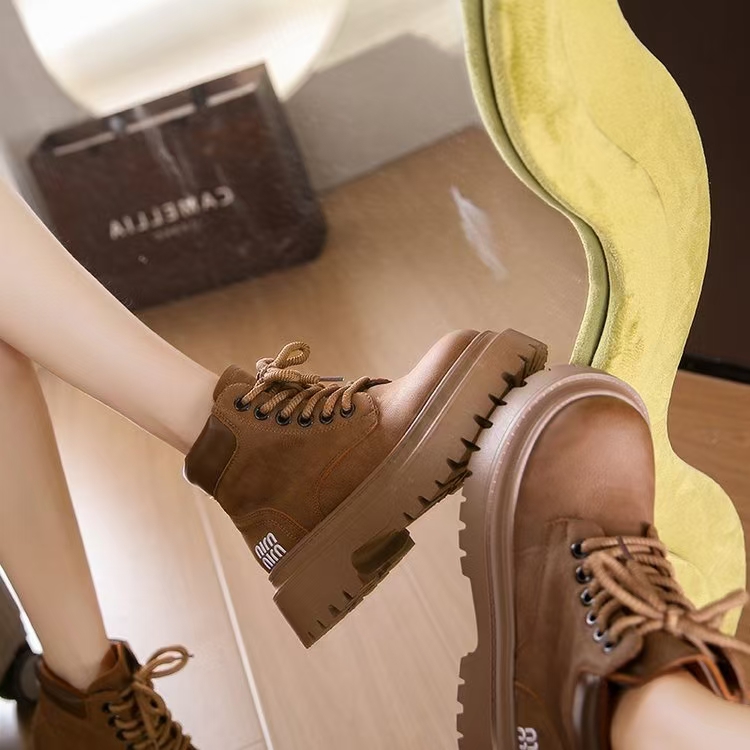 品牌正品惠州马丁靴女2025秋冬新大黄鞋工装厚底百搭复古短筒靴子