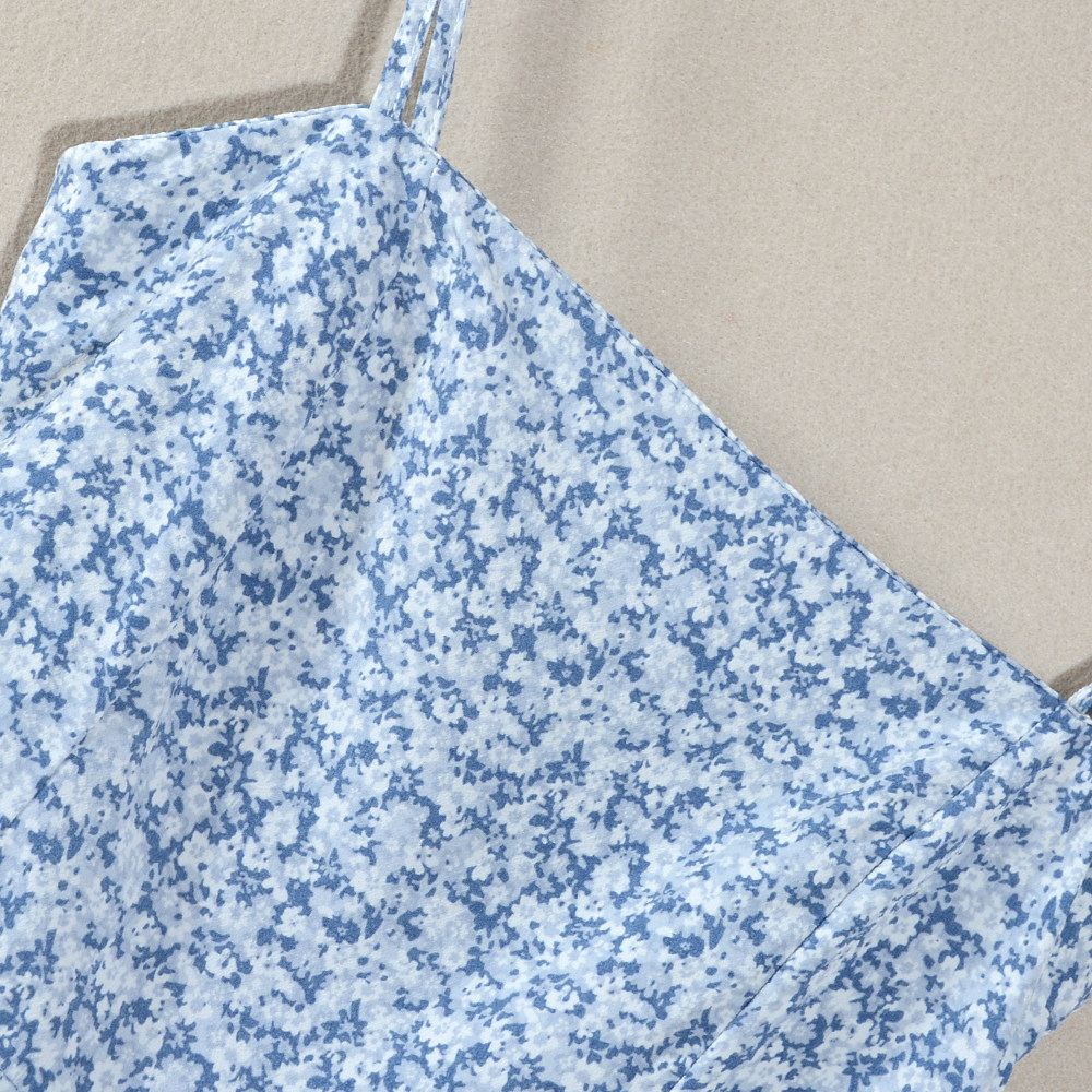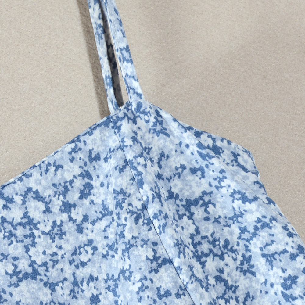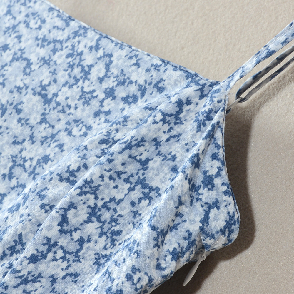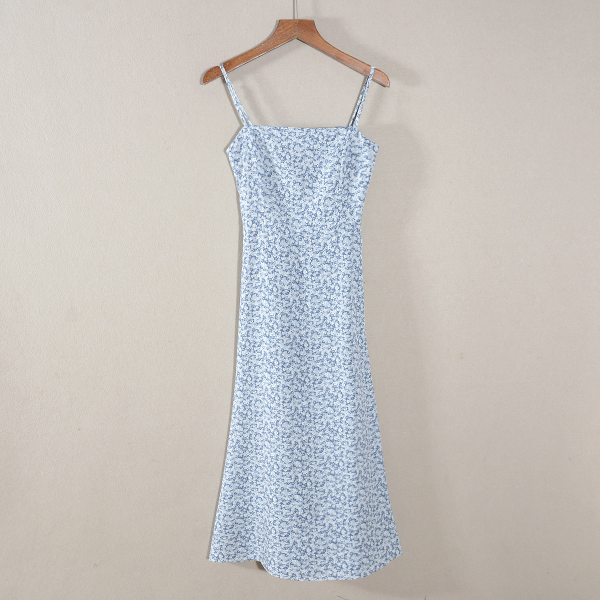 2025年夏装新品女款中长款印花吊带连衣裙子A字裙一字领无袖显瘦