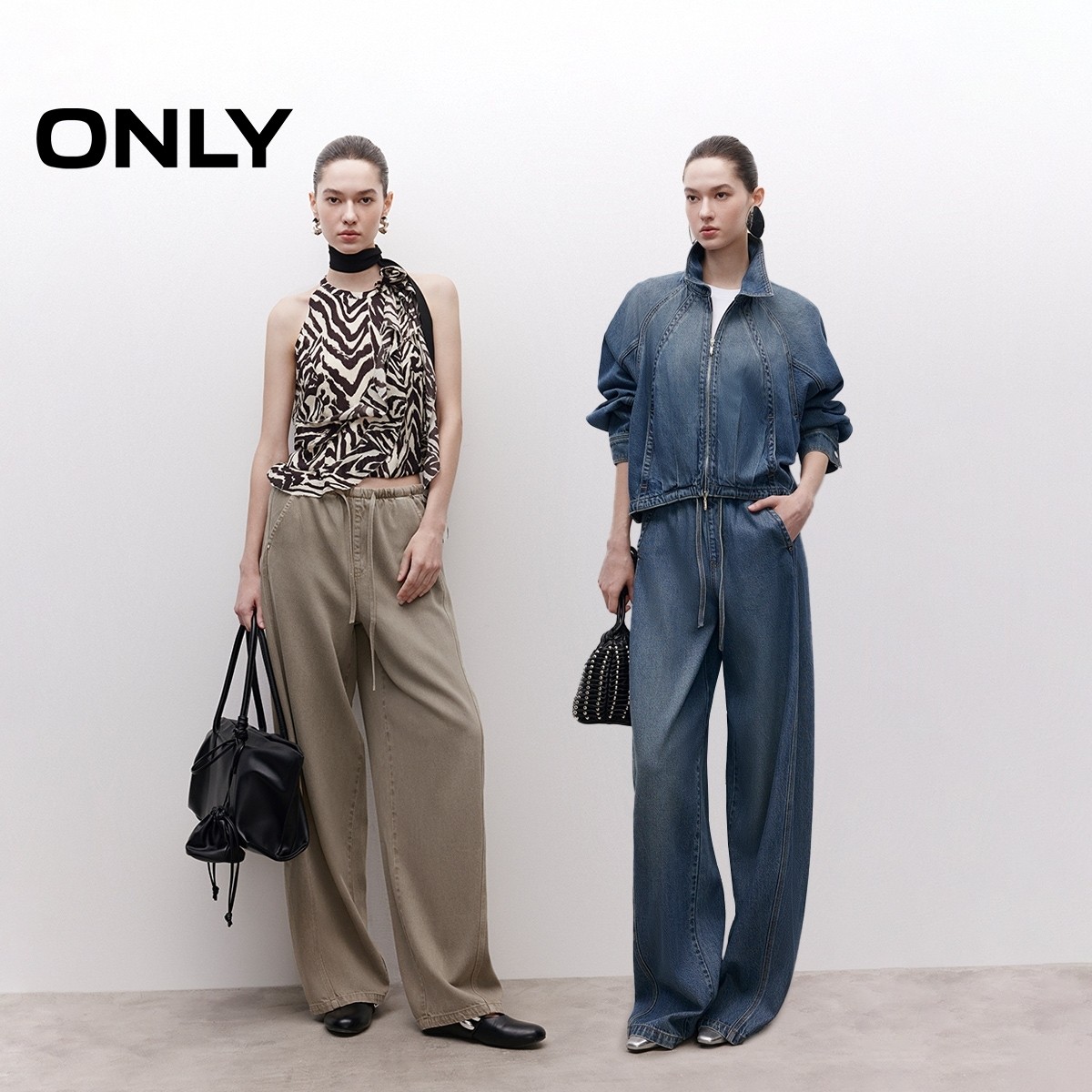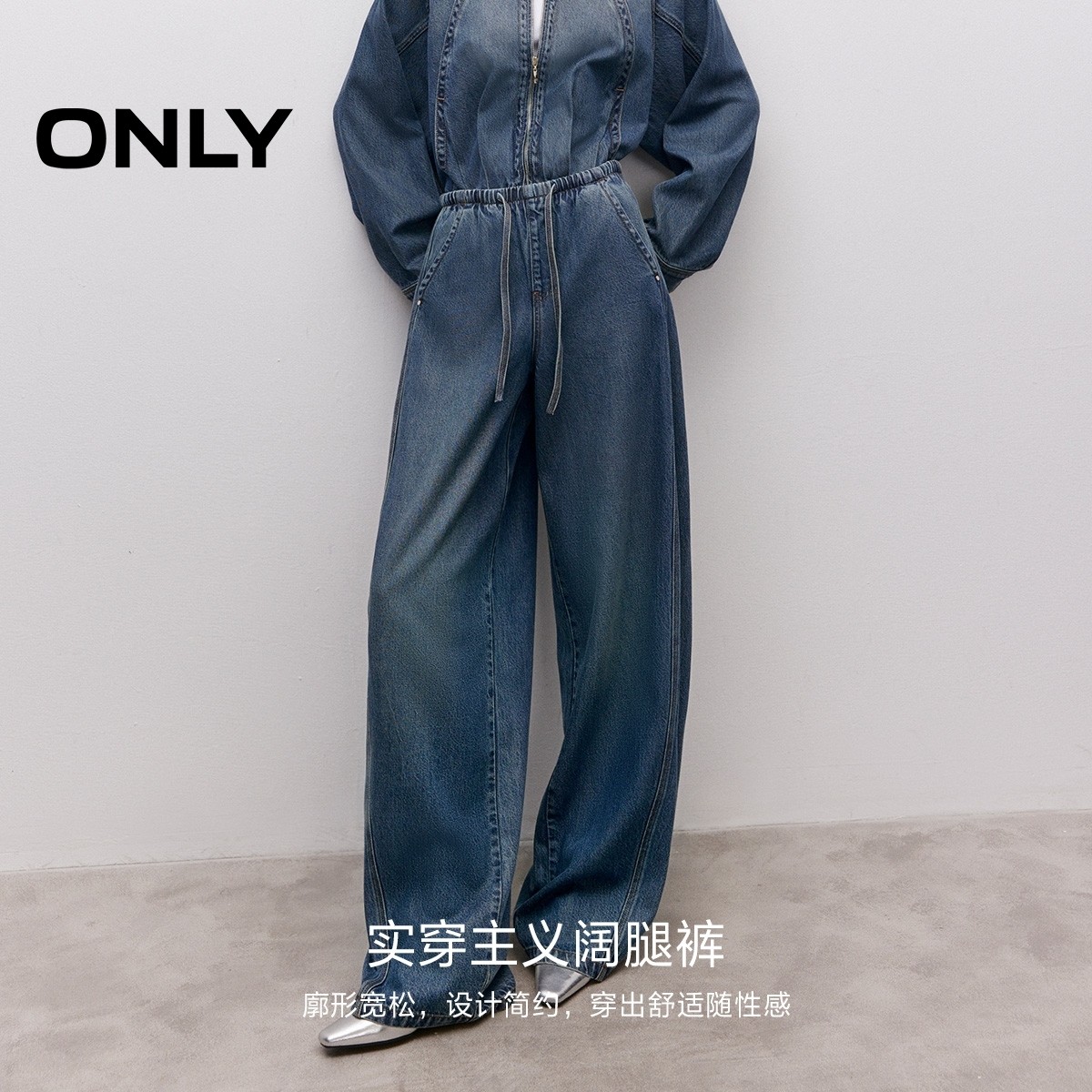 ONLY2025秋季新款时髦腰头系带宽松中腰松弛阔腿裤长裤牛仔裤女