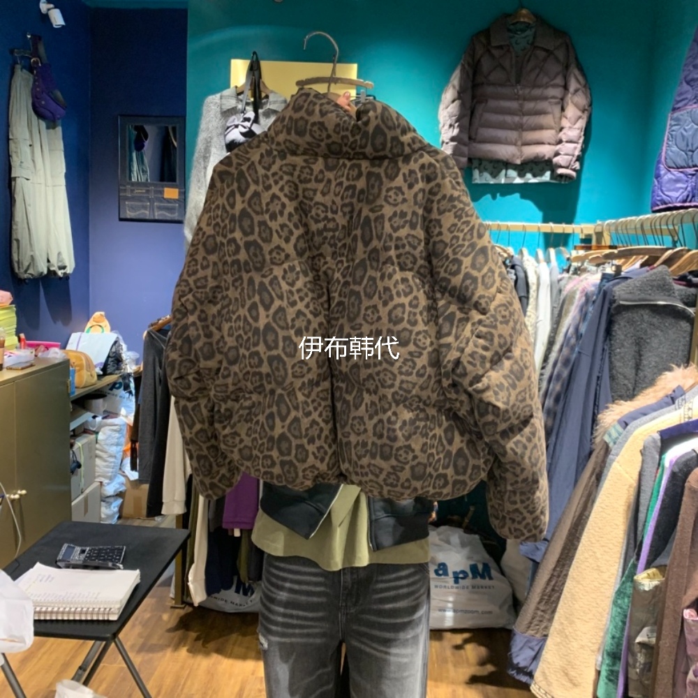 MERCI LINDA韩国东大门代购25冬款 立领休闲豹纹面包服羽绒服外套