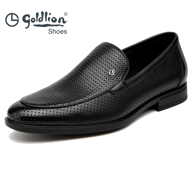 【清仓】金利来男鞋夏季真皮透气镂空男士皮鞋软皮软底商务乐福鞋