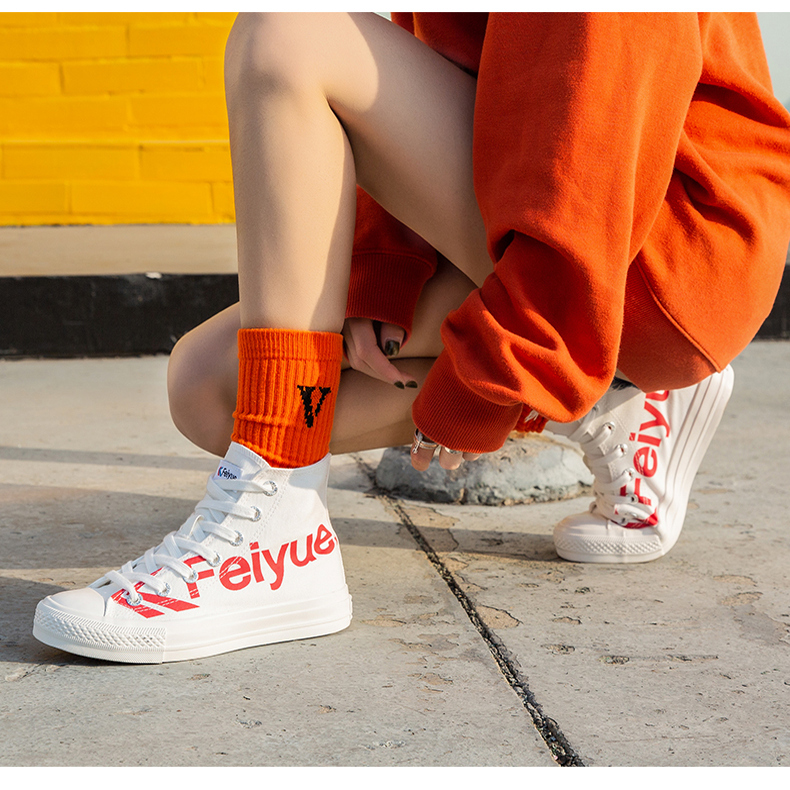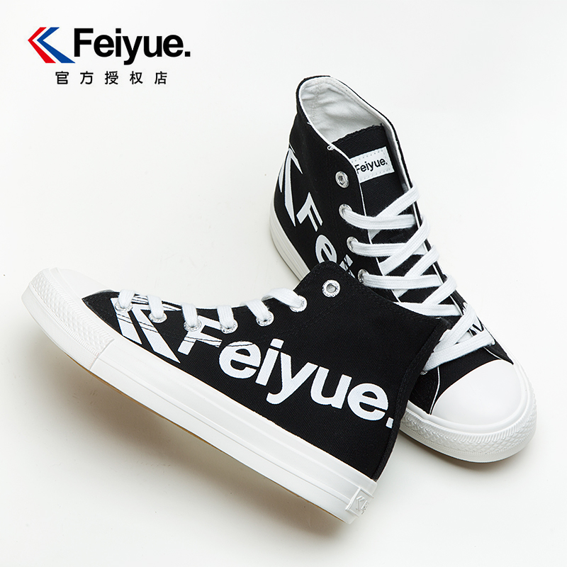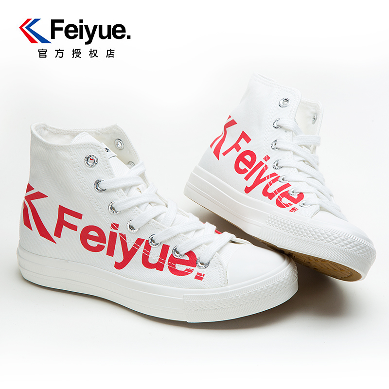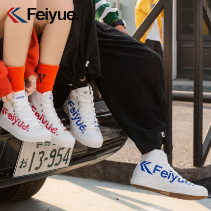 飞跃女鞋帆布鞋男高帮字母春夏季复古小白鞋潮流百搭学生休闲潮鞋