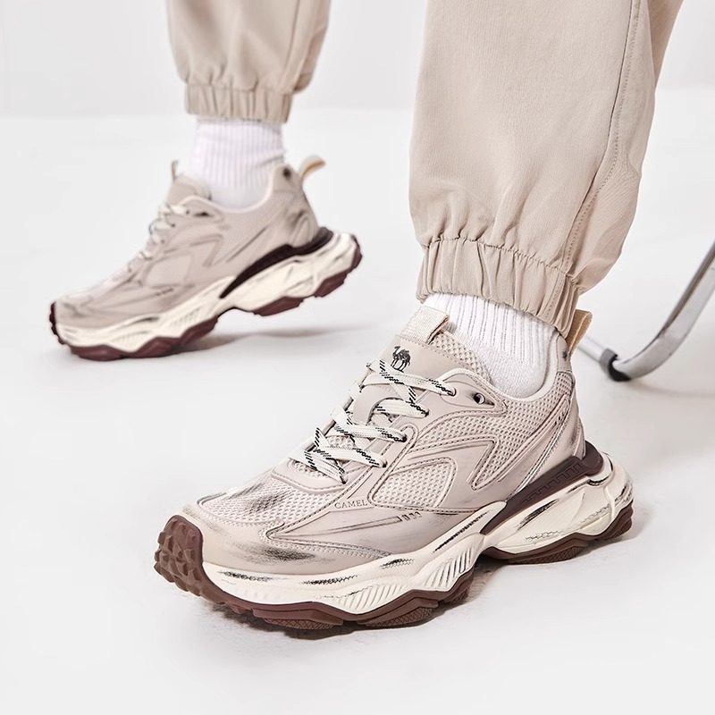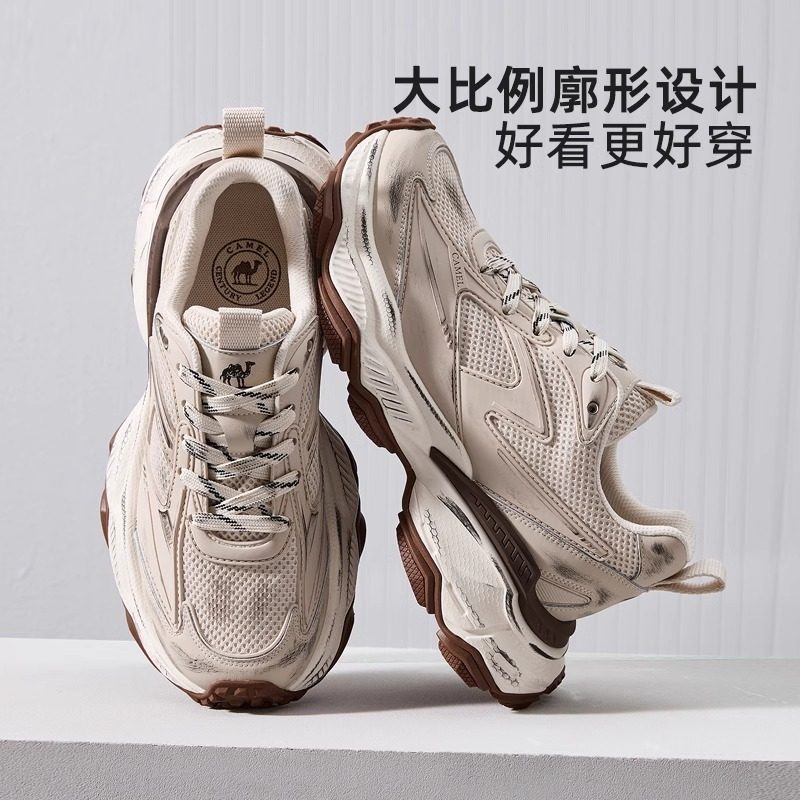 骆驼男鞋运动鞋2025秋季新款潮流复古老爹鞋男网面透气厚底休闲鞋